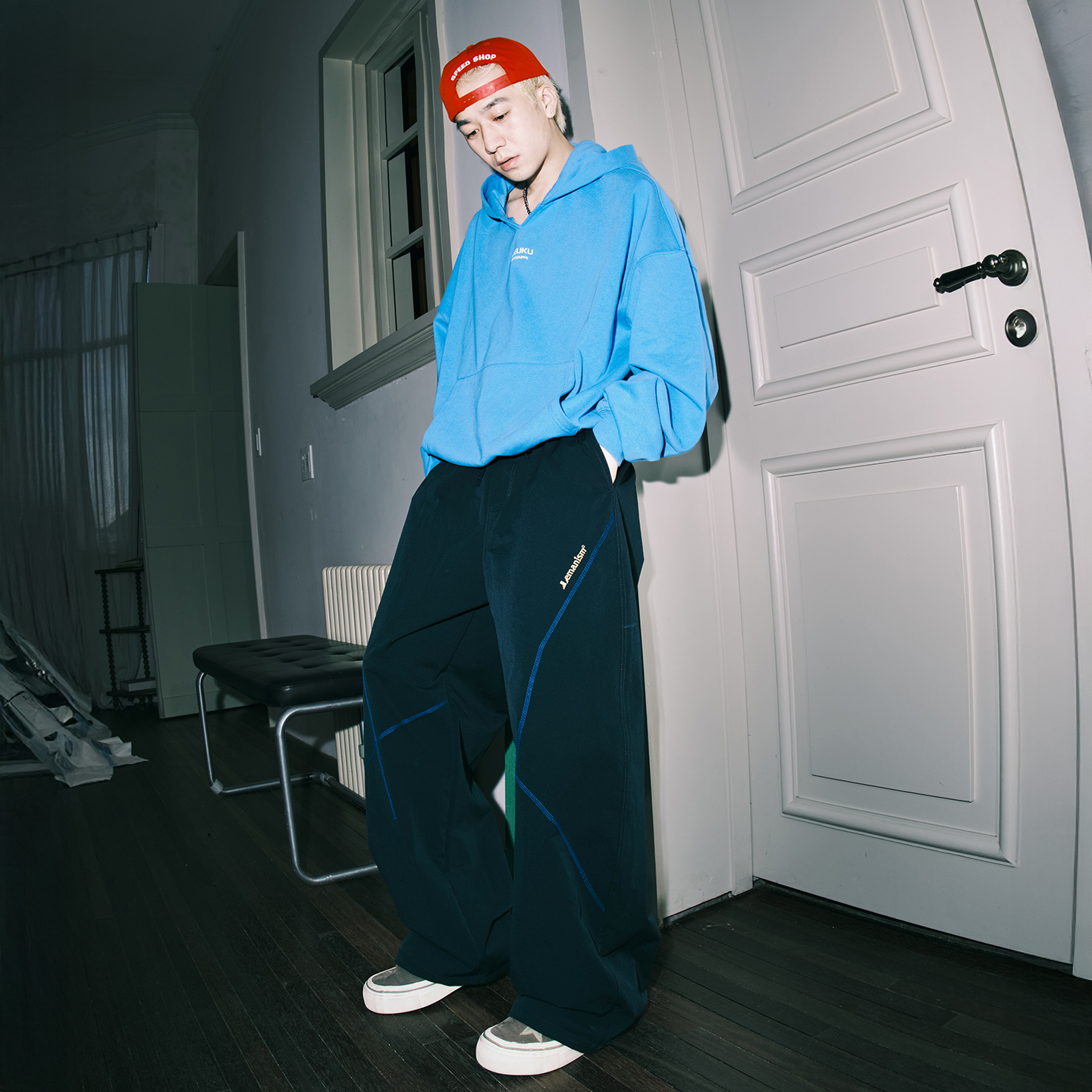 lemanism美式潮流撞色哈苏线字母直筒休闲裤男2025新款情侣款裤子