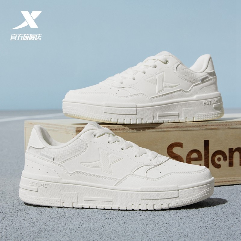 特步板鞋女鞋情侣同款新款小白鞋运动休闲鞋低帮百搭板鞋官方正品