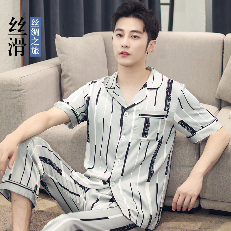 维多利亚真丝夏季睡衣男100%桑蚕丝长袖长裤薄款两件套家居服套装