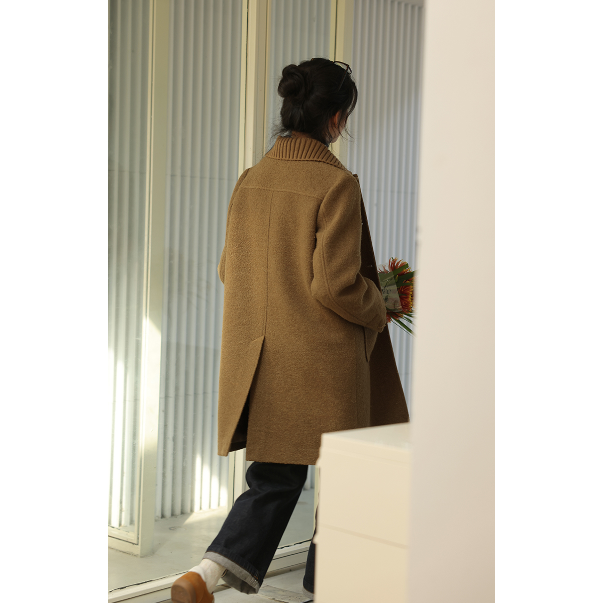 solighter 法式复古小香风针织领大衣女秋冬2025新款中长毛呢外套