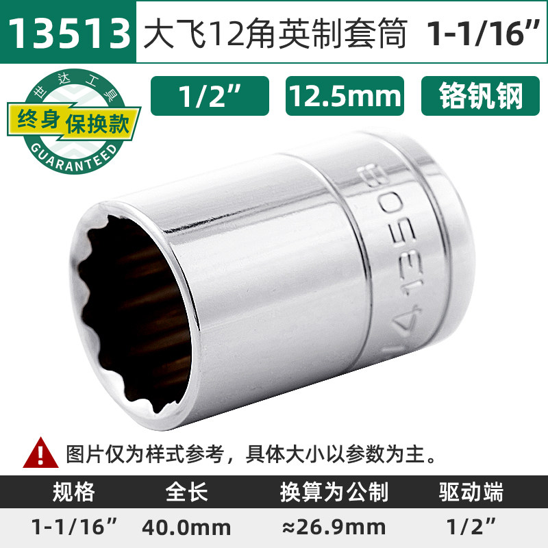 世达英制套筒套装22件大飞12角梅花套筒单个扳手花键头套头09088