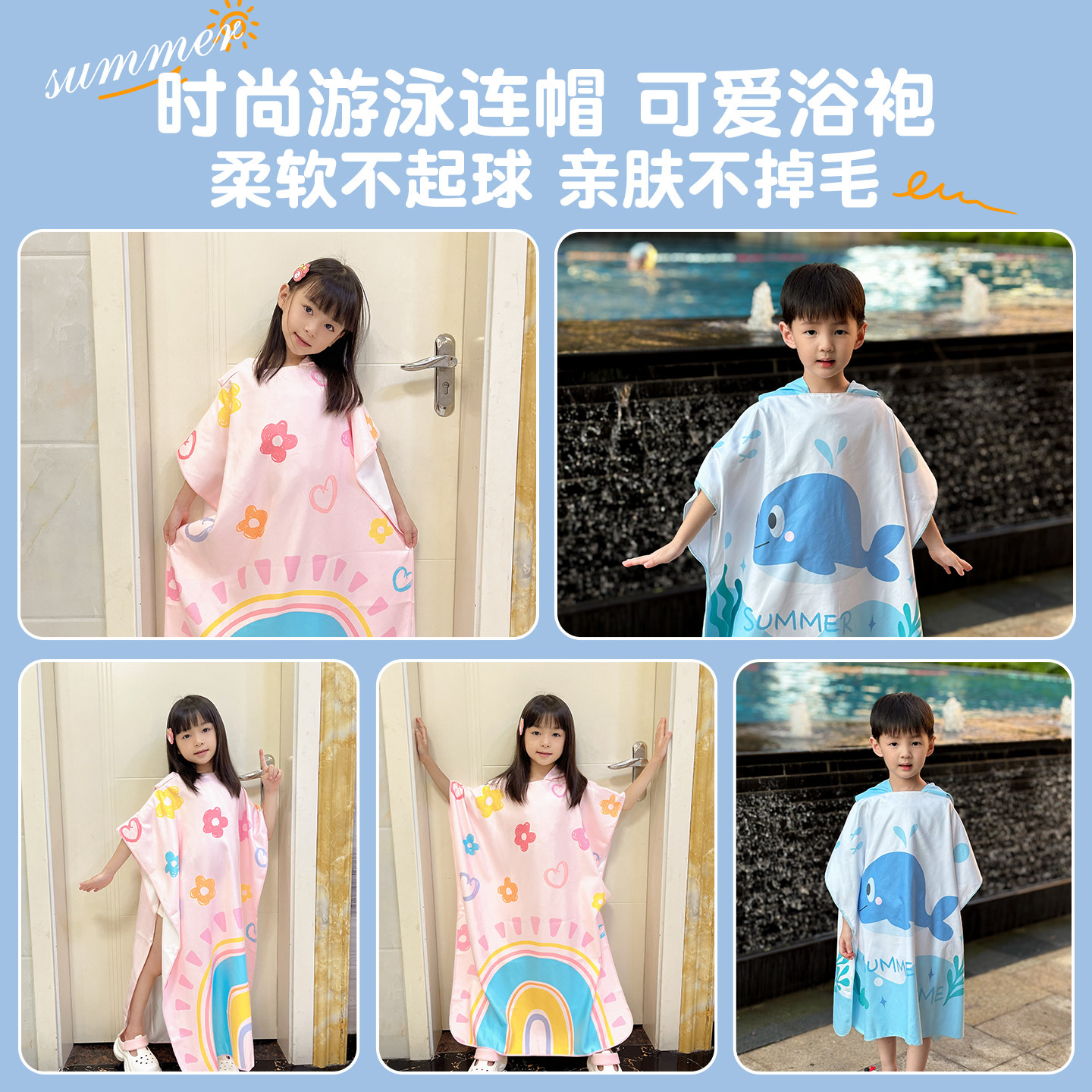 儿童浴巾可穿式游泳运动专用斗篷浴袍吸水快干便携女童男童大裹巾