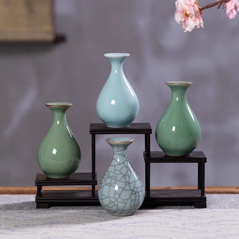 创意陶瓷青瓷小葫芦花瓶摆件简约家居装饰品瓷器插花花器水培客厅