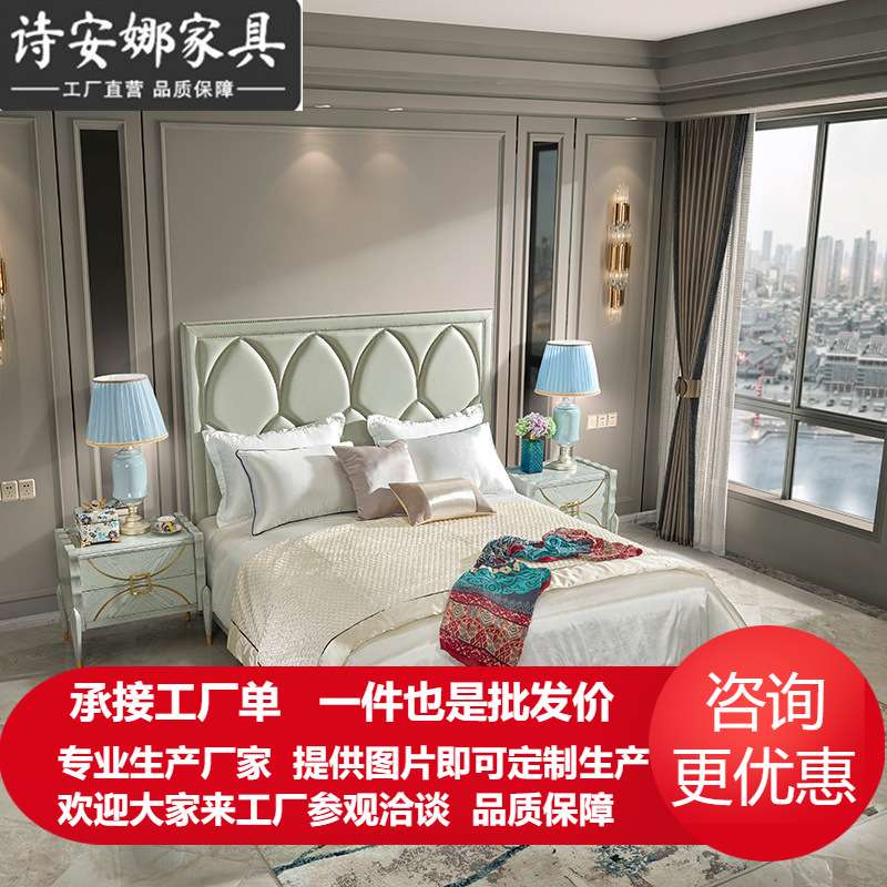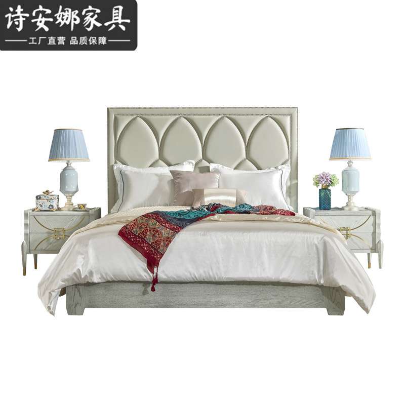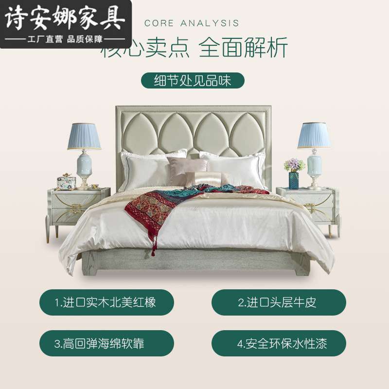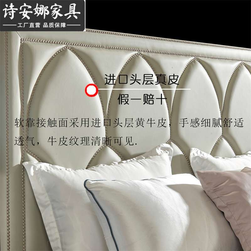 美式实木雕花床皮艺双人床主卧1.8米婚床现代简轻奢床奢华家具