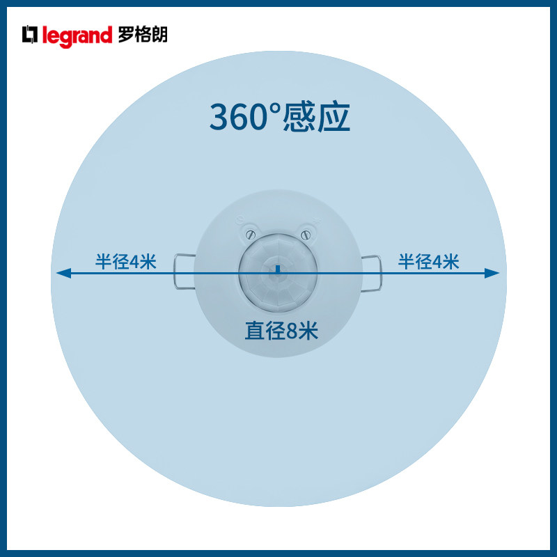 罗格朗莹悦人体感应开关吸顶式顶装红外线家用智能可调光线延时器