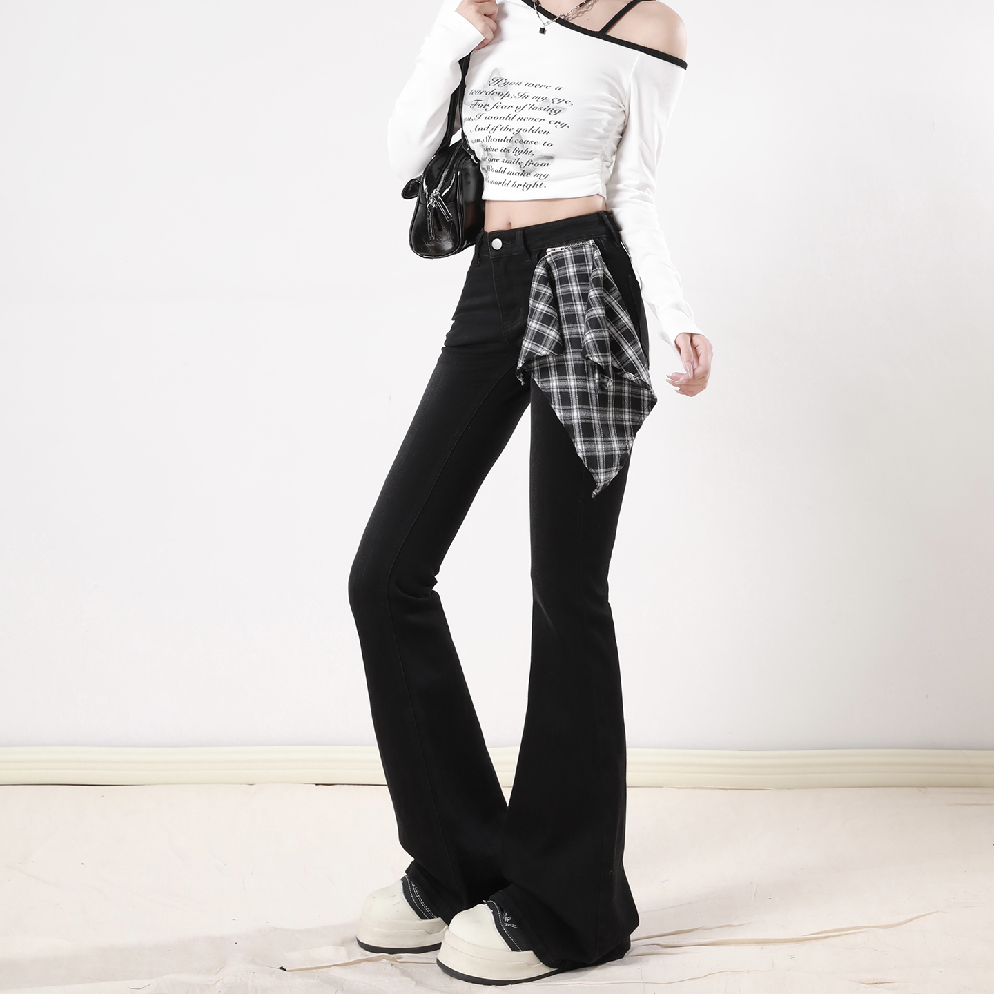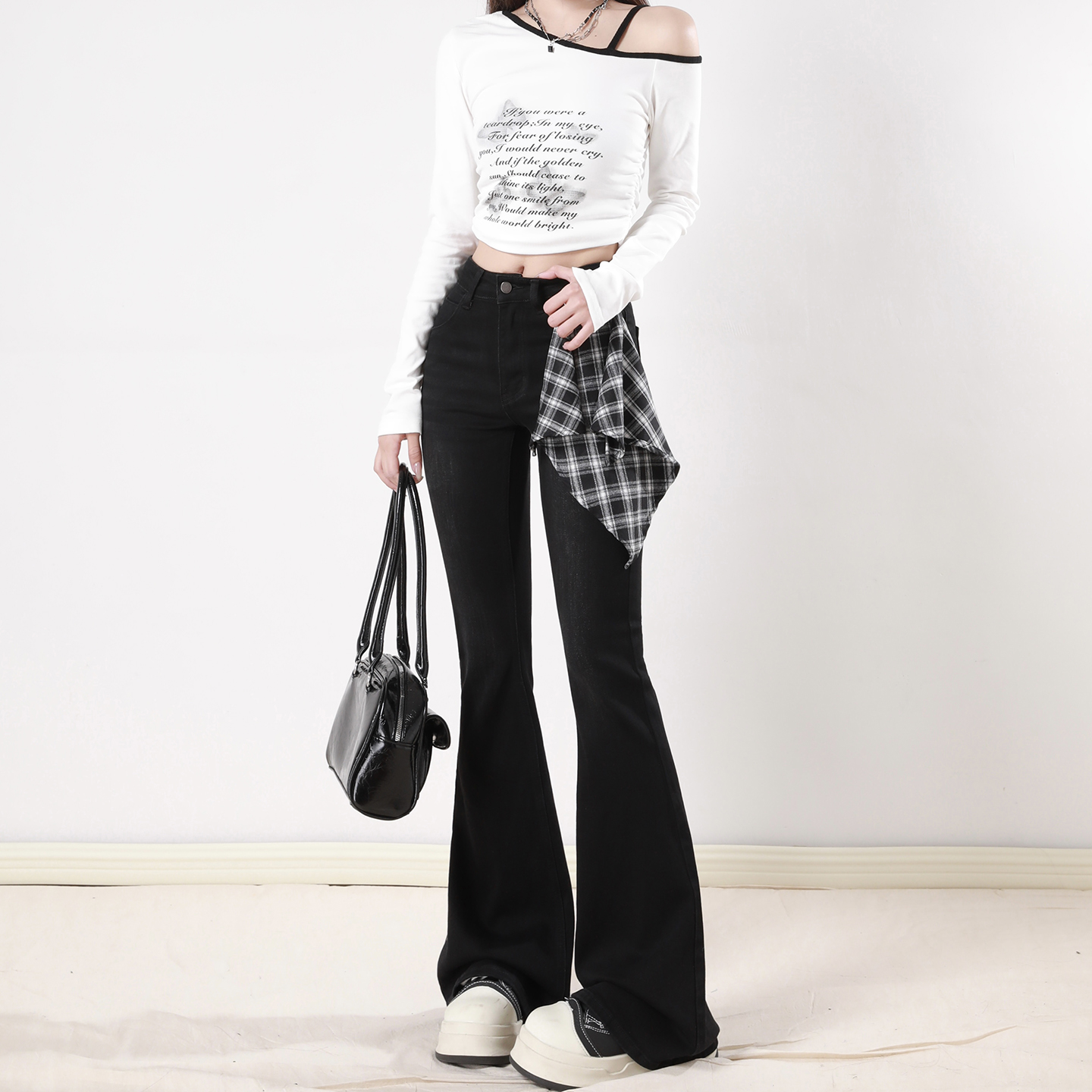 艾格黑色辣妹微喇牛仔裤女2025秋季新款修身显瘦设计感毛边马蹄裤