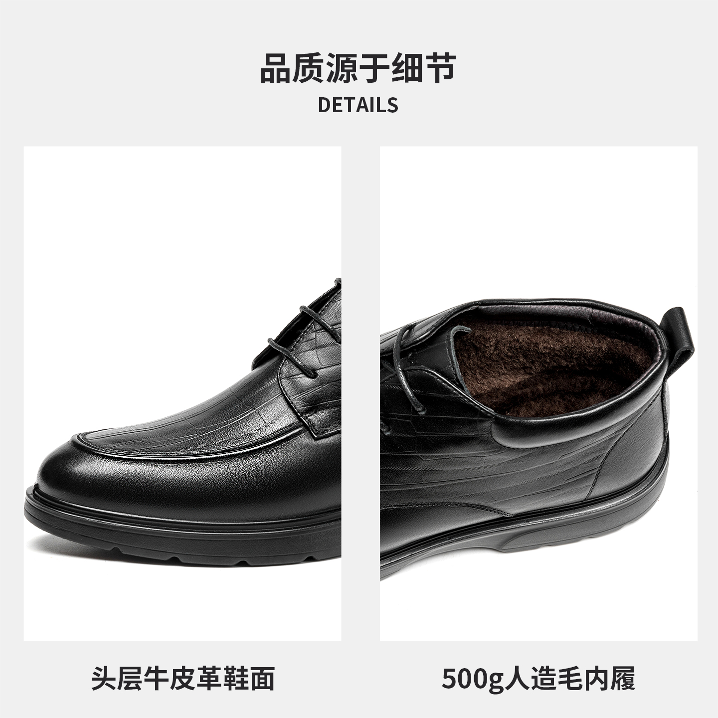 奥康 2025冬季新款男鞋正装皮鞋商务黑色加绒保暖高帮爸爸棉鞋