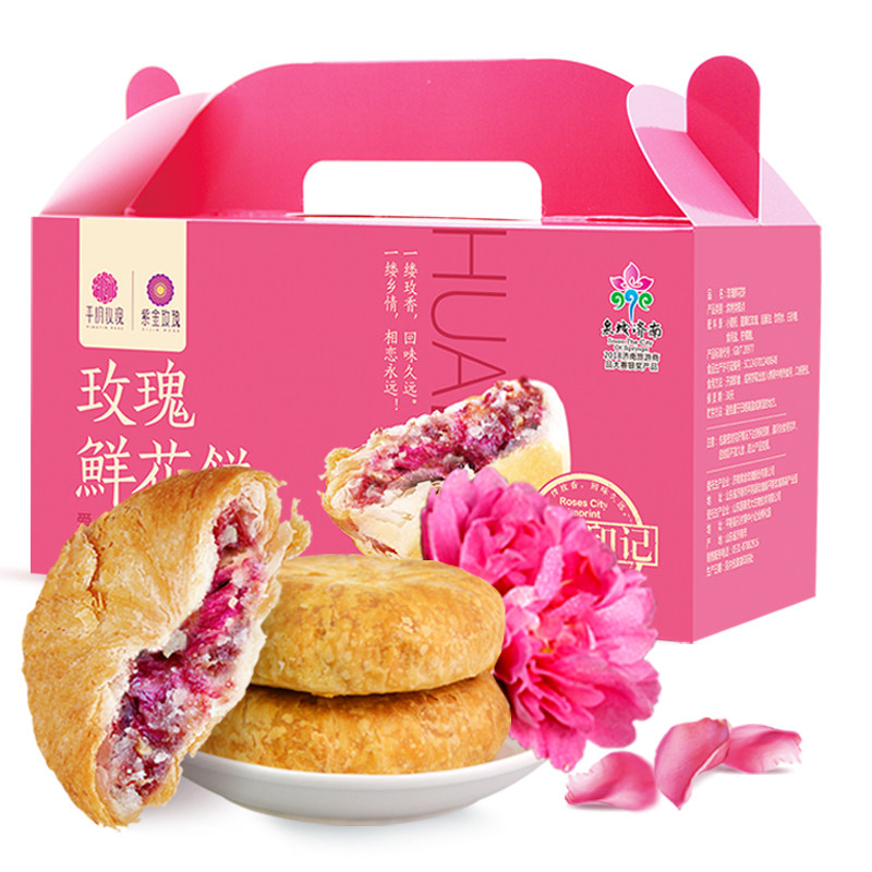 平阴紫金玫瑰官方店济南特产花鲜花饼糕点早餐礼品礼盒印记玫瑰饼