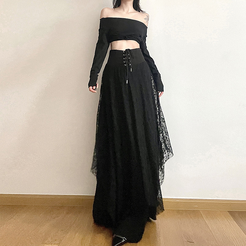 gagaopt长裙A字绑带蕾丝半身裙