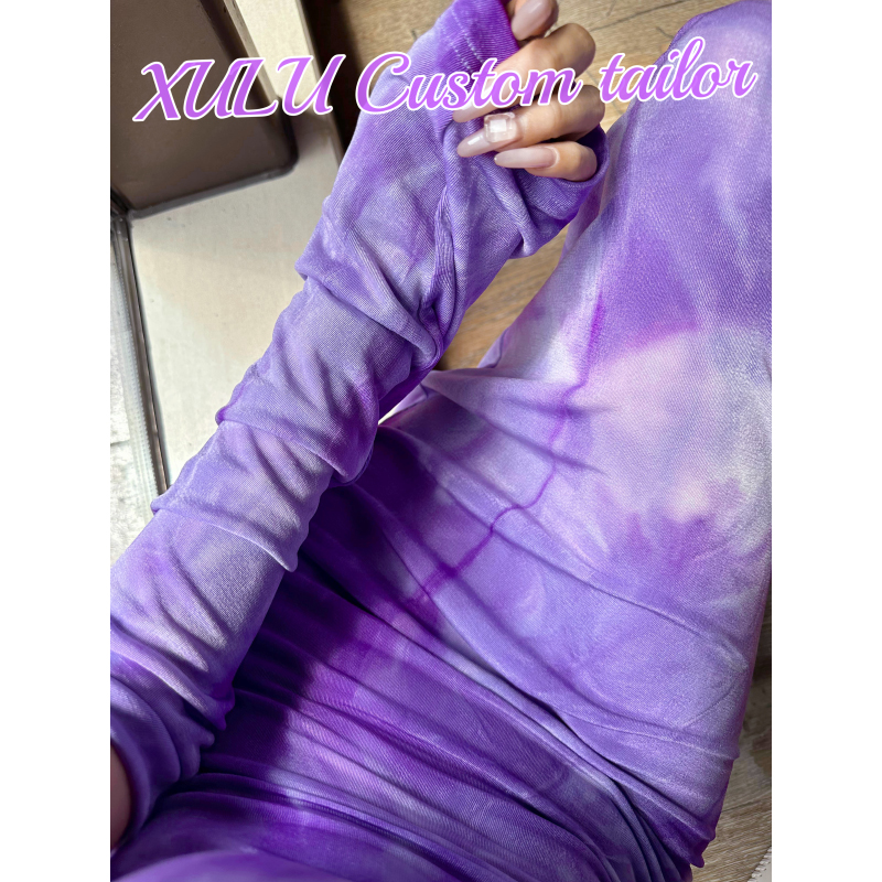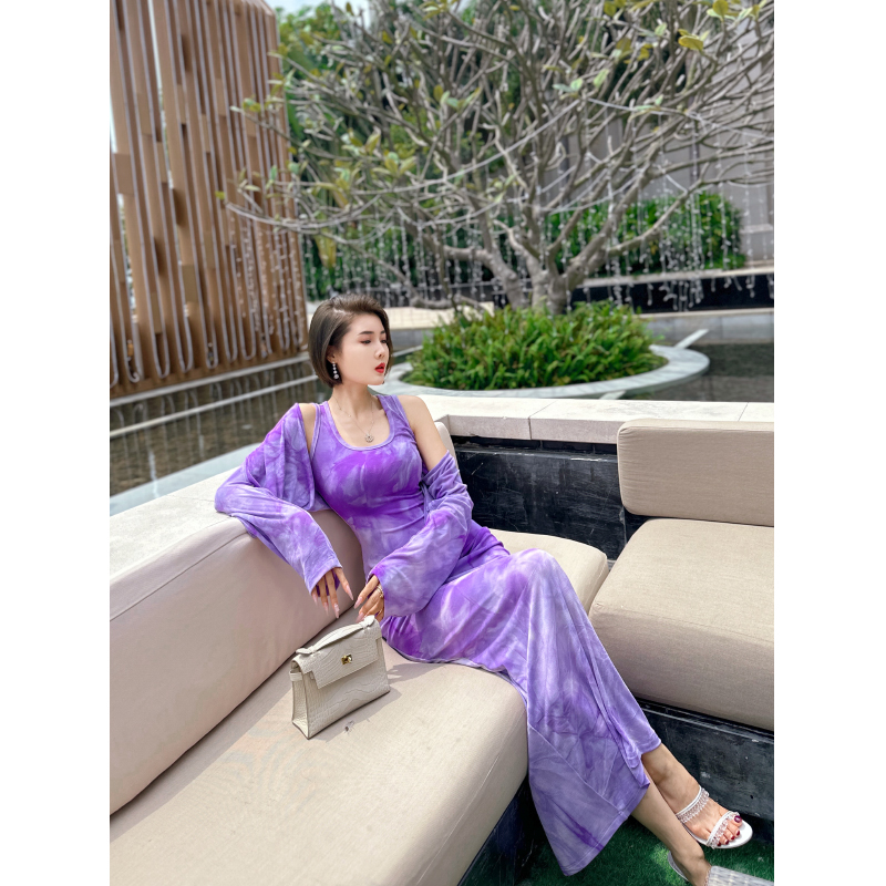 XULU原创扎染醋酸气质蝙蝠袖开衫性感U型领吊带连衣裙两件套装