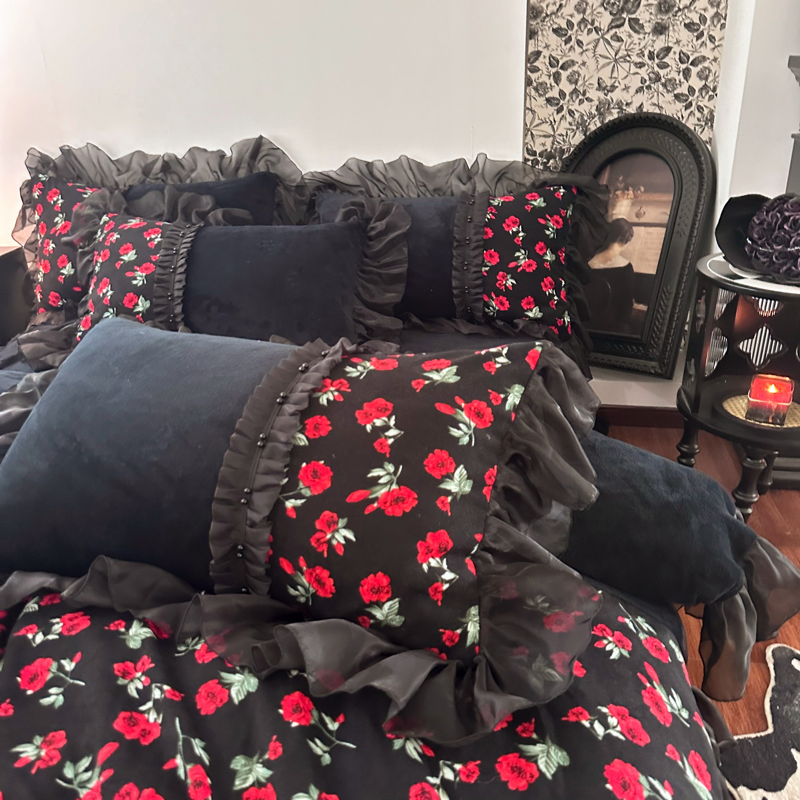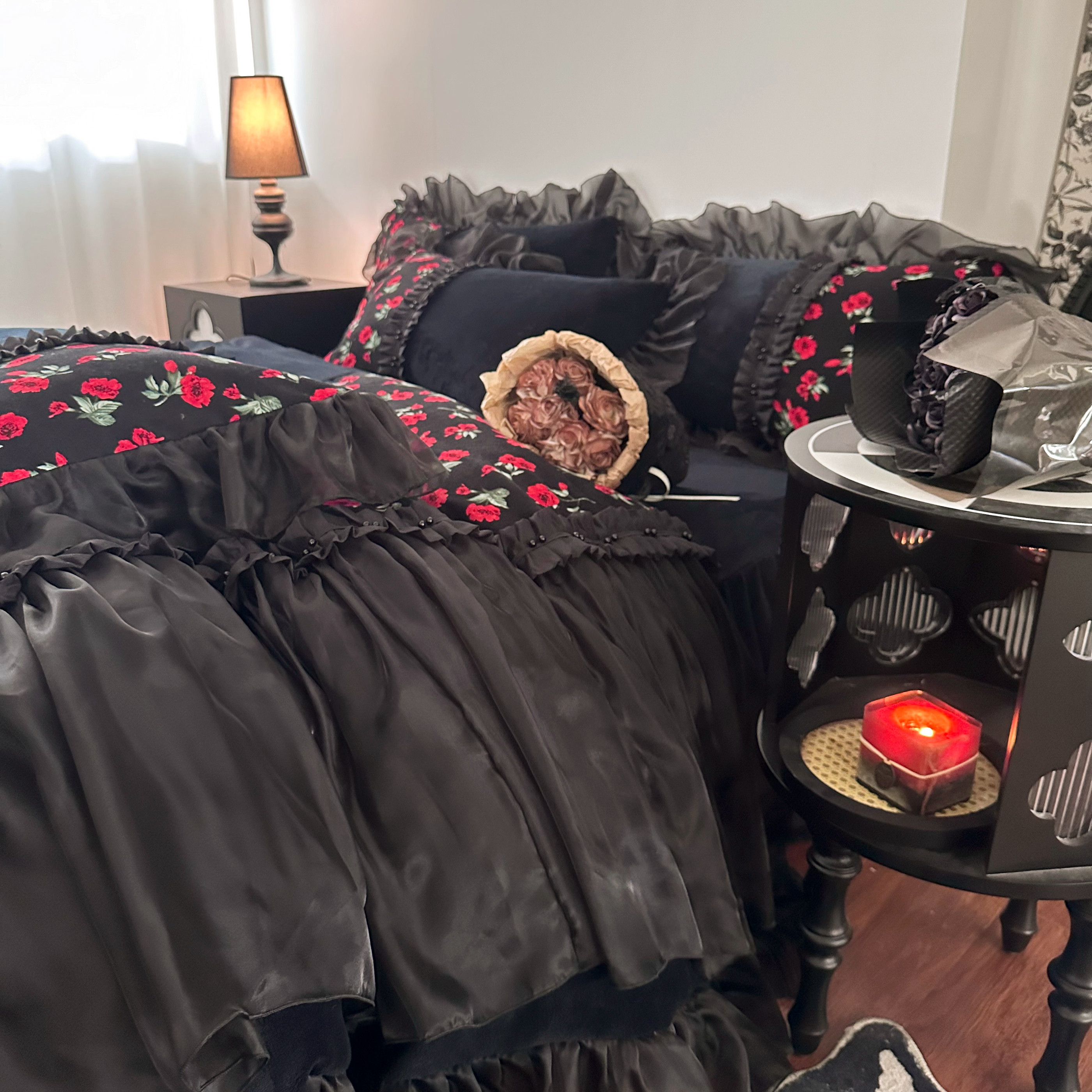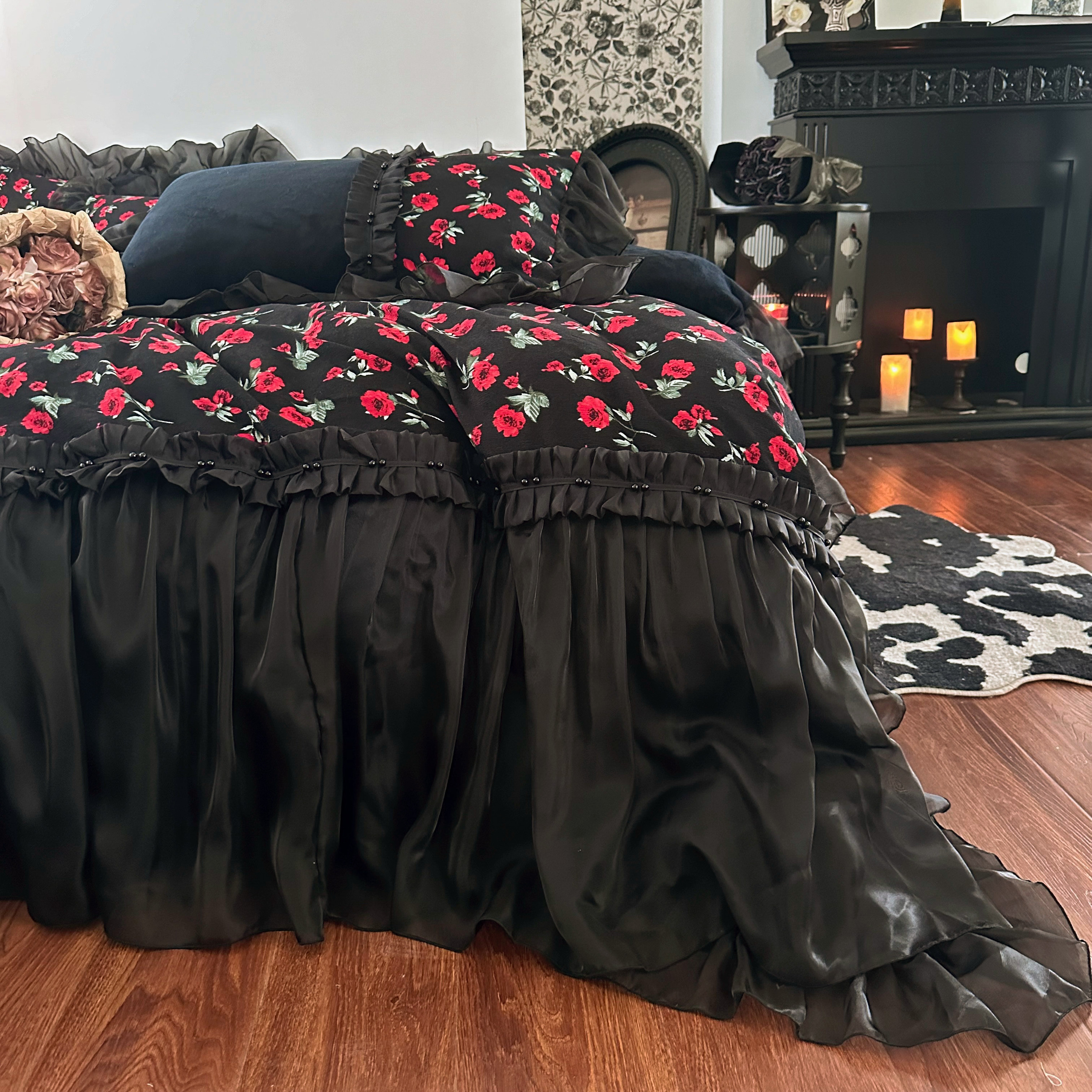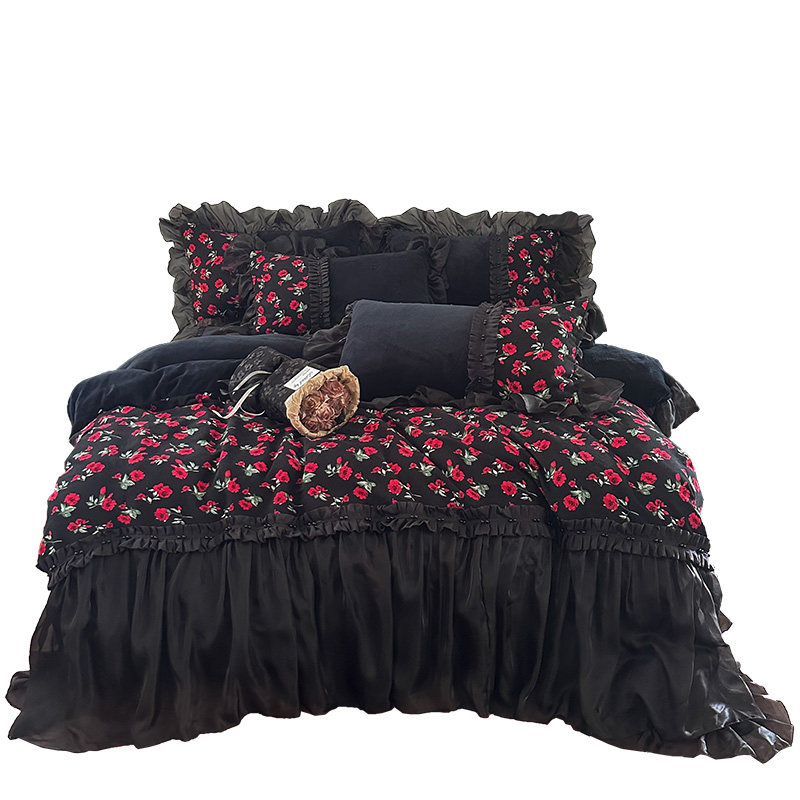 冬季法式复古玫瑰加厚牛奶绒四件套蕾丝毛绒被套珊瑚绒公主风床裙