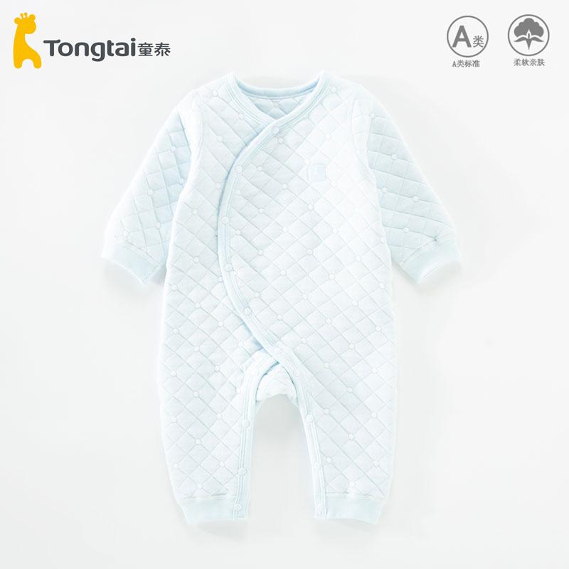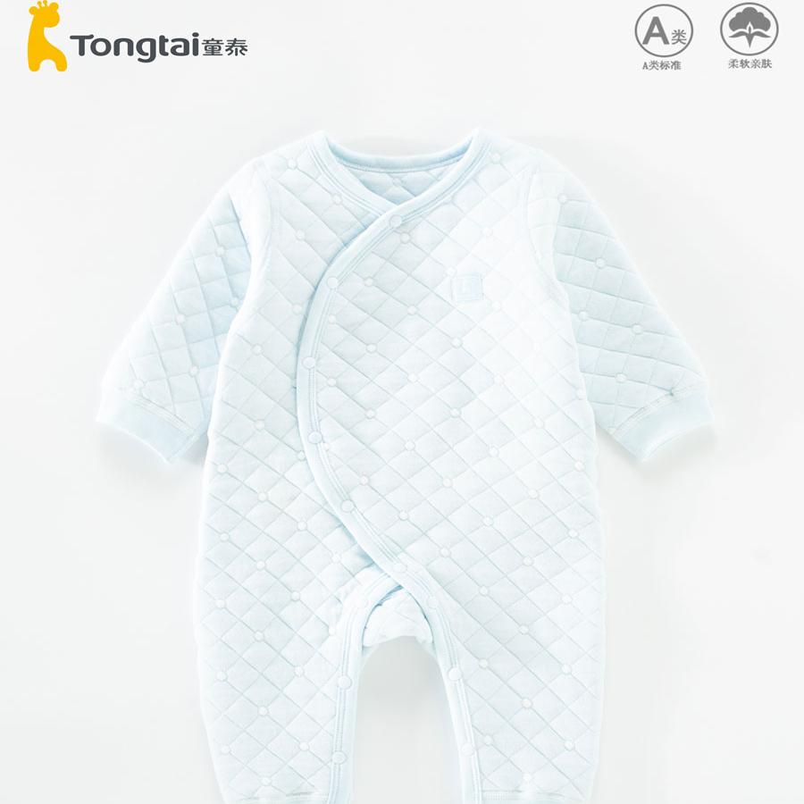 童泰婴儿春秋纯棉a类连体衣宝宝保暖偏开哈衣爬服三层保暖0-6个月