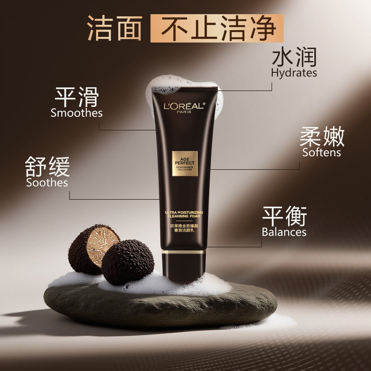 欧莱雅金致臻颜奢润黑松露洗面奶洁颜乳深层温和清洁紧致抗皱淡纹