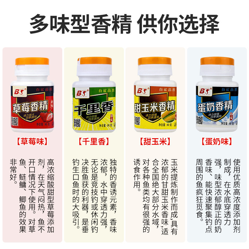 白鲨钓鱼诱食剂野钓黑坑鲫鱼鲤鱼香精草鱼鲢鳙开口果酸窝料添加剂
