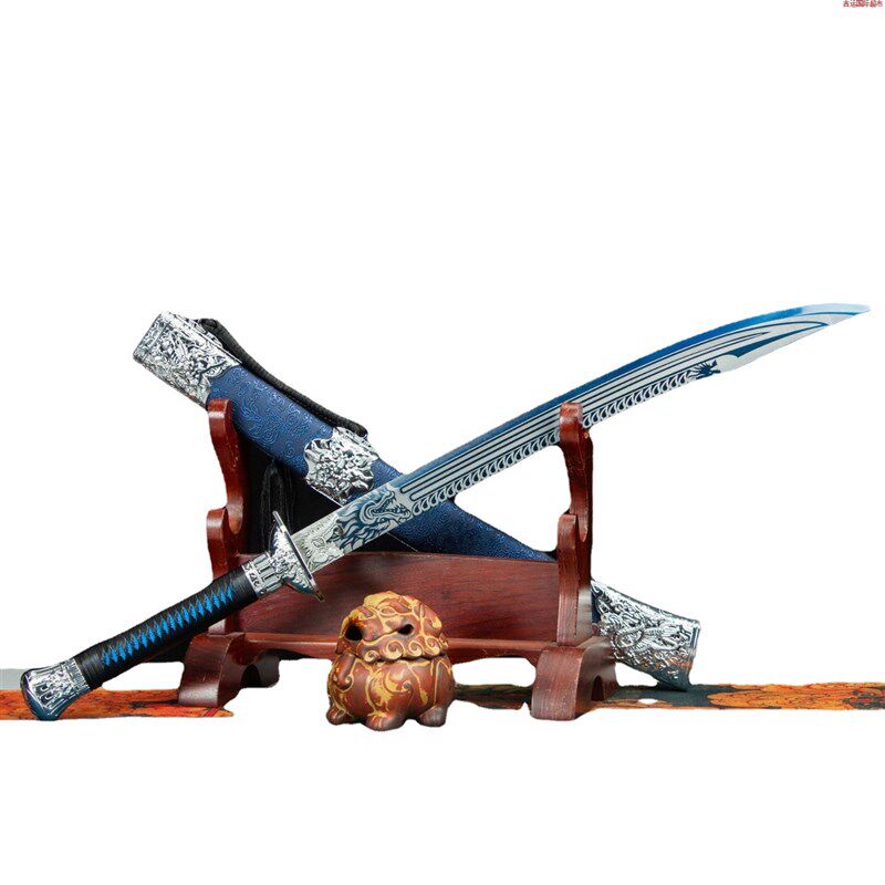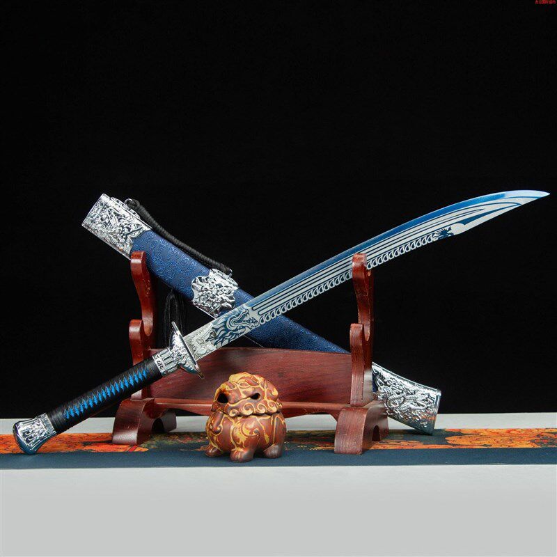 锻打刀剑高锰钢烤蓝龙虎牛尾战刀一G体影视宝剑绣春刀收藏未开刃