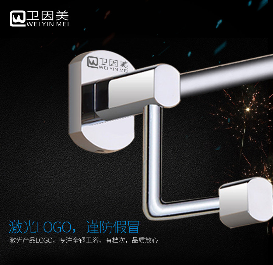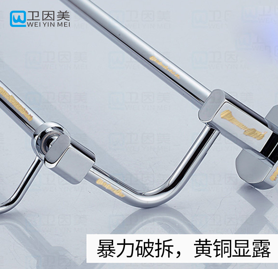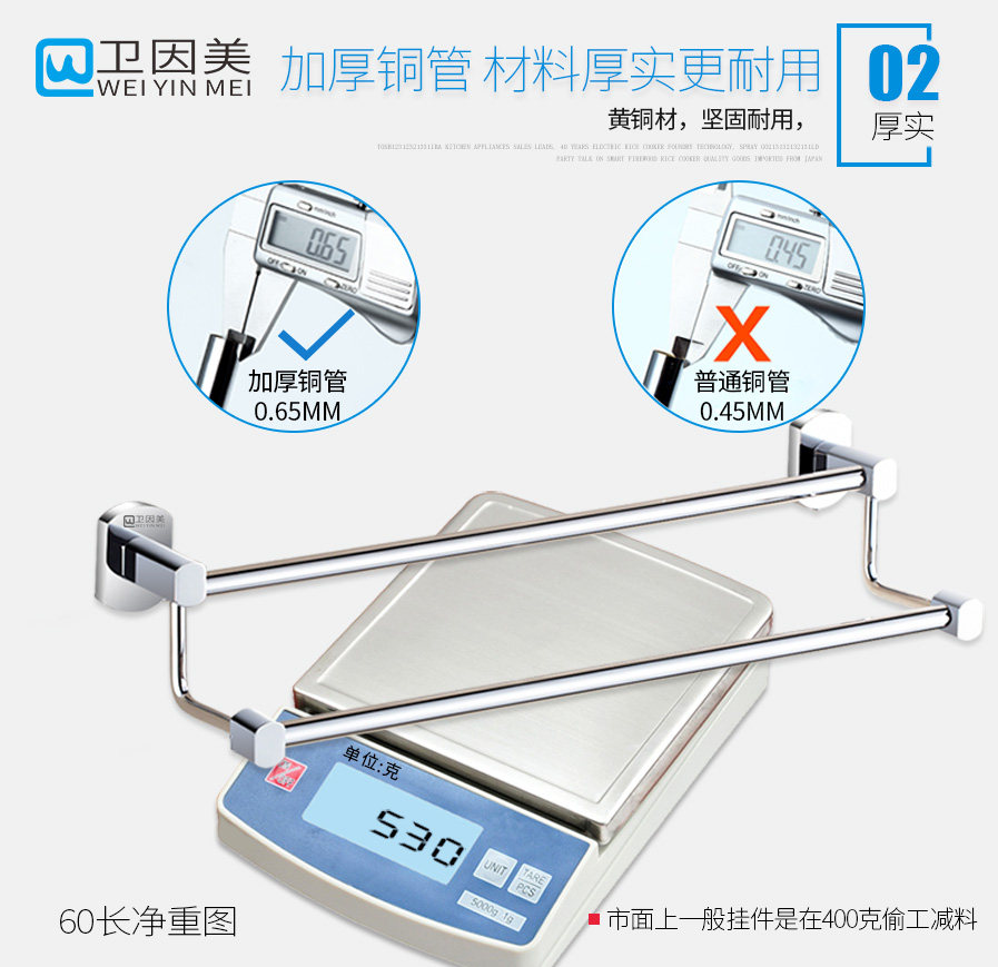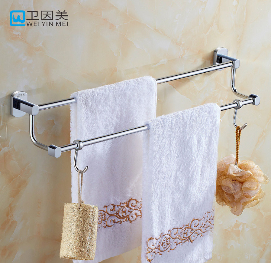 免打孔全铜双杆毛巾架 浴巾架卫浴浴室挂件五金卫生间双层 不锈钢
