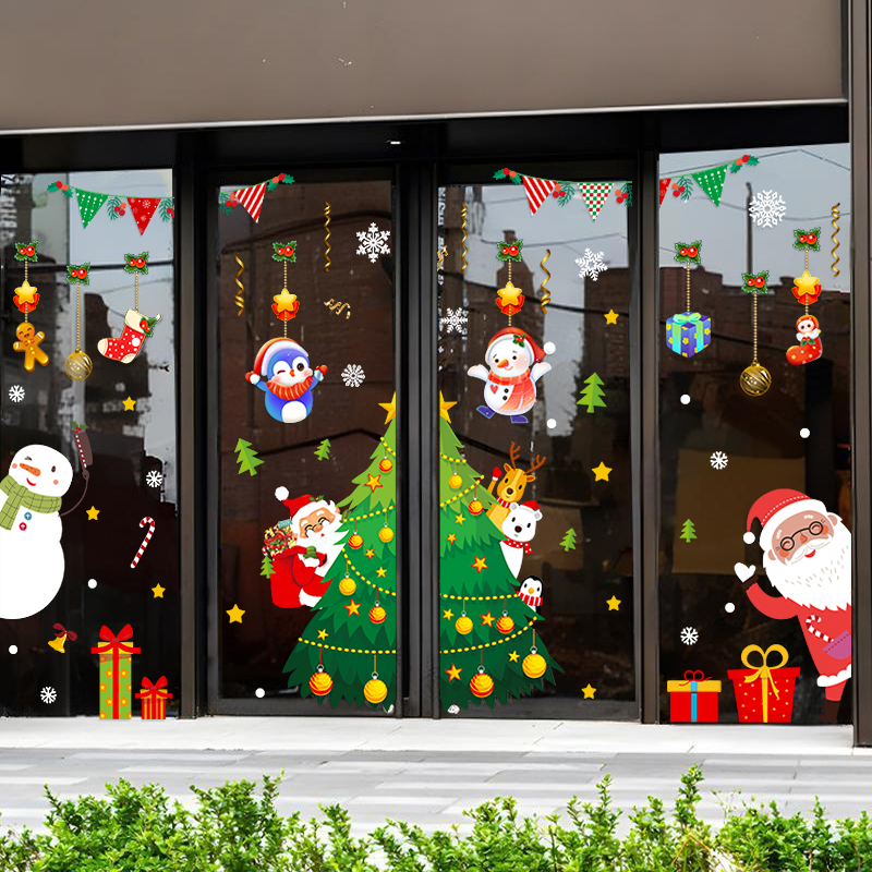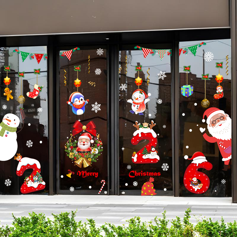 2026圣诞节玻璃门贴纸元旦新年新款装饰品布置酒店店铺橱窗贴窗花