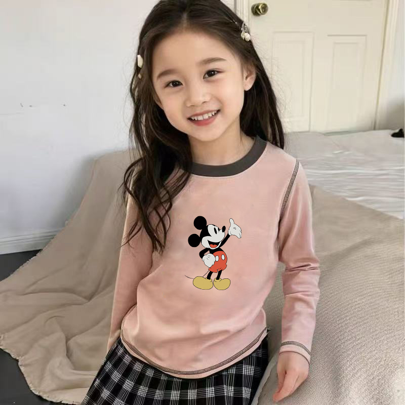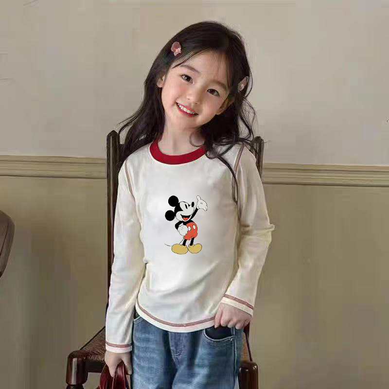 100%纯棉女童圆领长袖T恤春秋新款小孩儿童宝宝卡通洋气打底上衣
