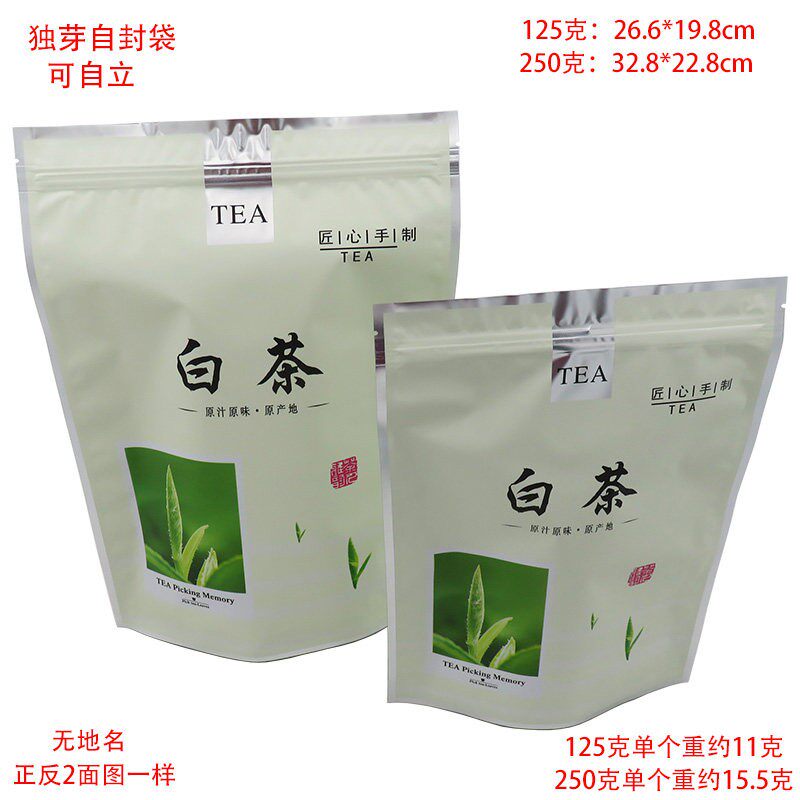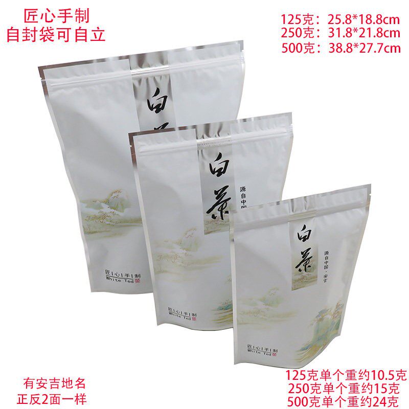 白茶自封袋铝箔袋茶叶包装袋密封防潮自立袋125克250克500克100个