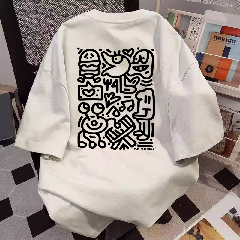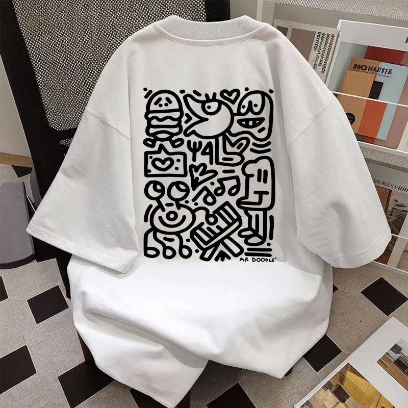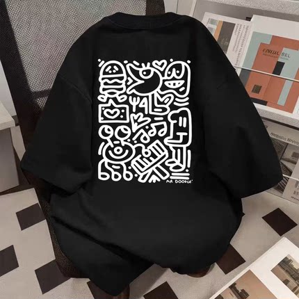 重磅纯棉港风ins设计感涂鸦印花短袖T恤男女夏季宽松潮流百搭上衣