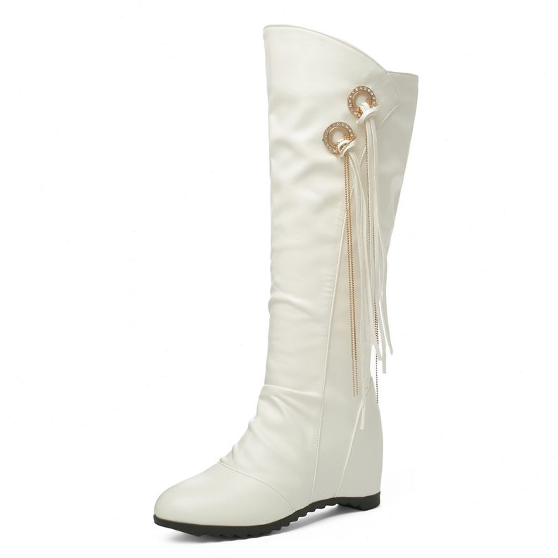 时尚流苏高筒靴不拉链冬季内增高侧圆头过膝春秋中跟靴大码女靴子