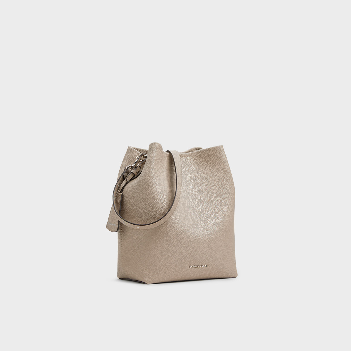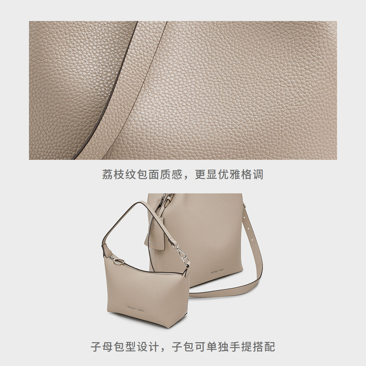 CHARLES&KEITH春季女包CK2-10151504荔枝纹单肩子母水桶托特包