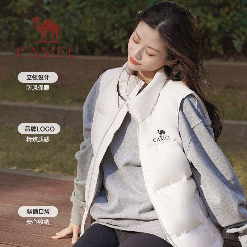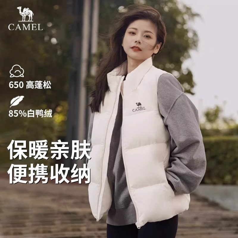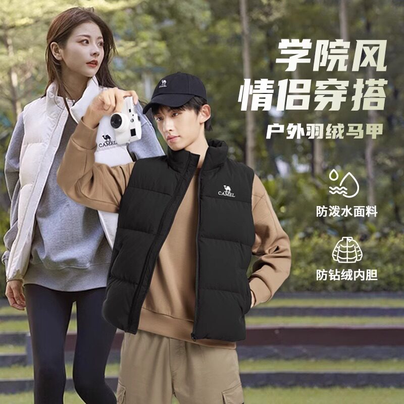 骆驼羽绒马甲男女同款秋冬季新款运动轻薄短款羽绒背心休闲外套