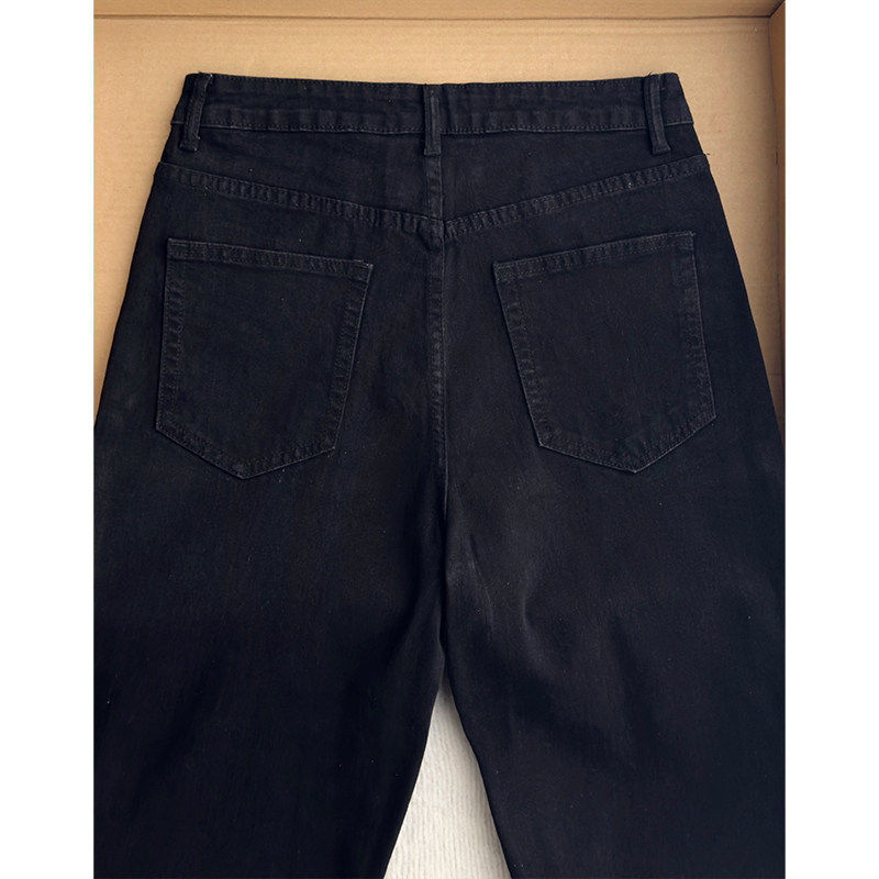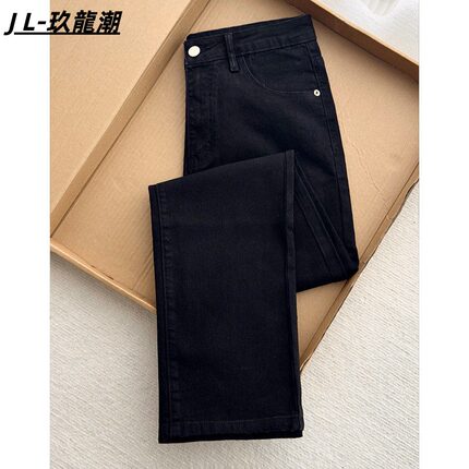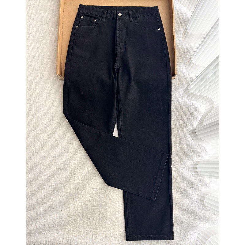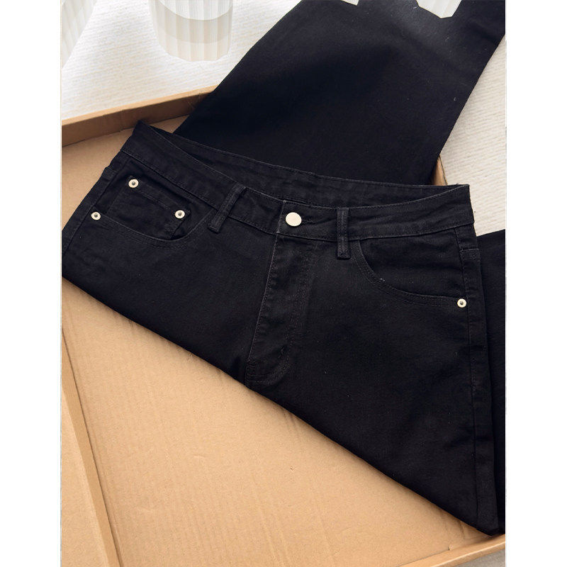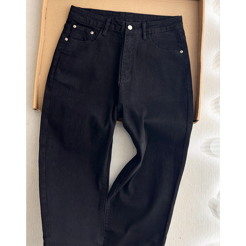 cleanfit纯黑色牛仔裤男女春秋季情侣通勤美式高街风弹力直筒长裤