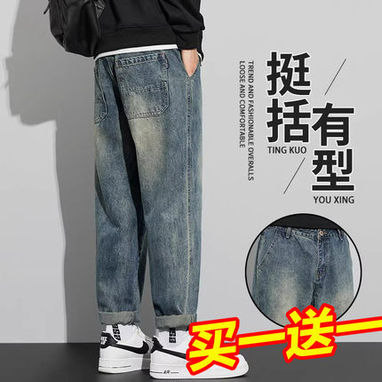 Yishion以纯实体店同款牛仔裤子男潮牌2025新款复古宽松直筒美式