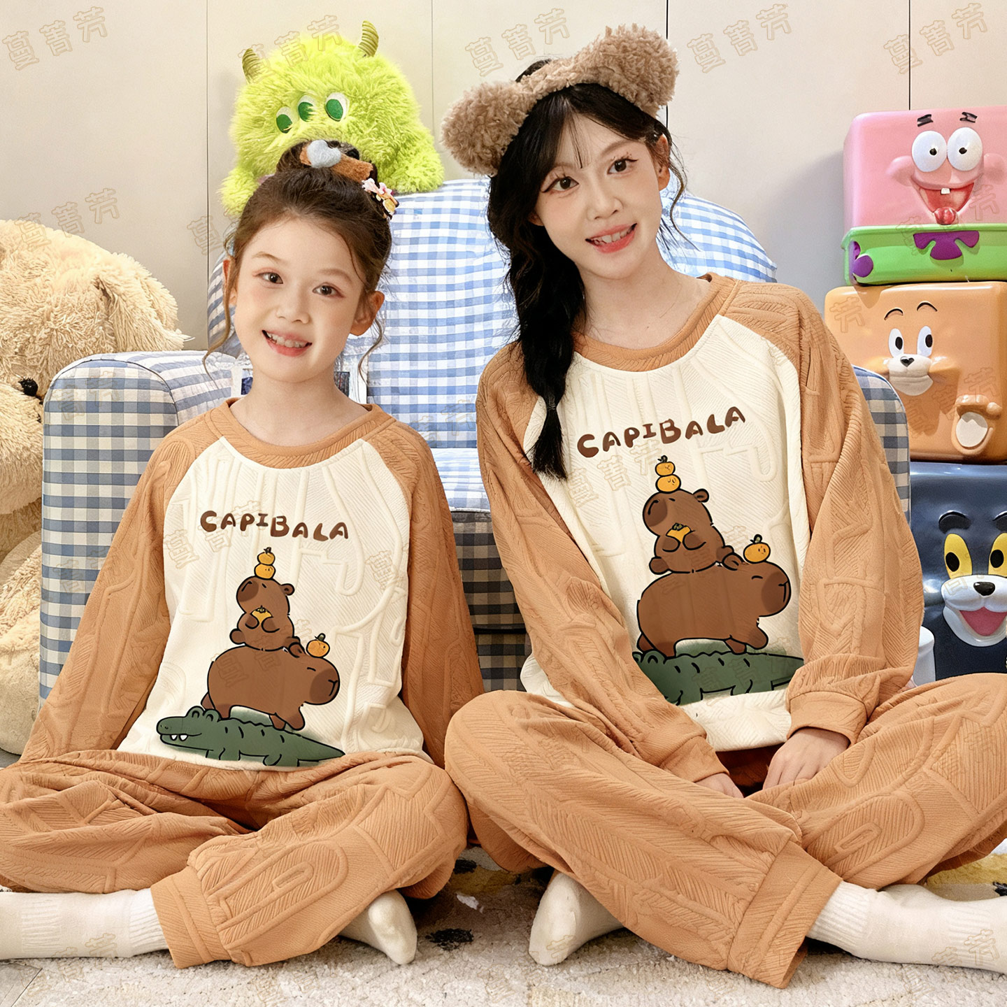 母女装冬季空气棉卡皮巴拉家居服