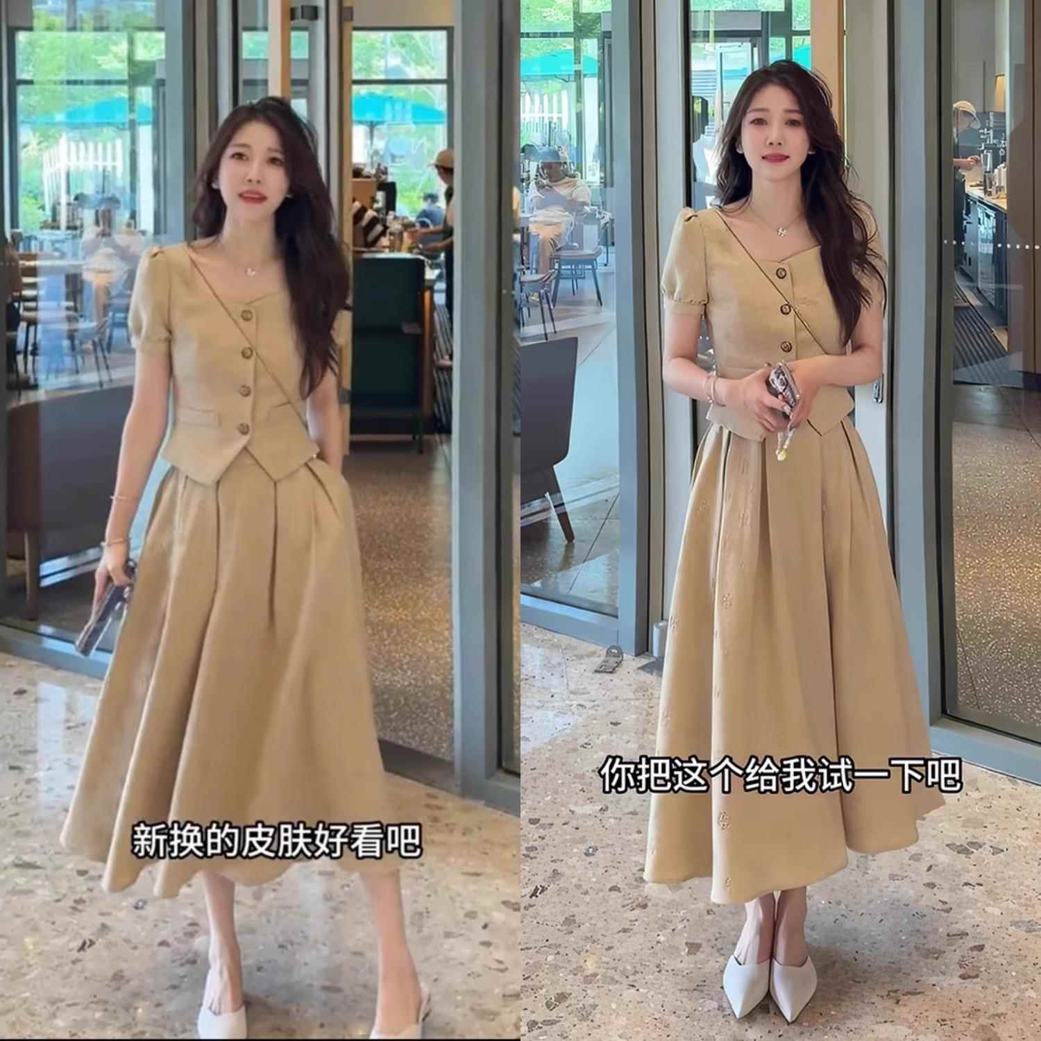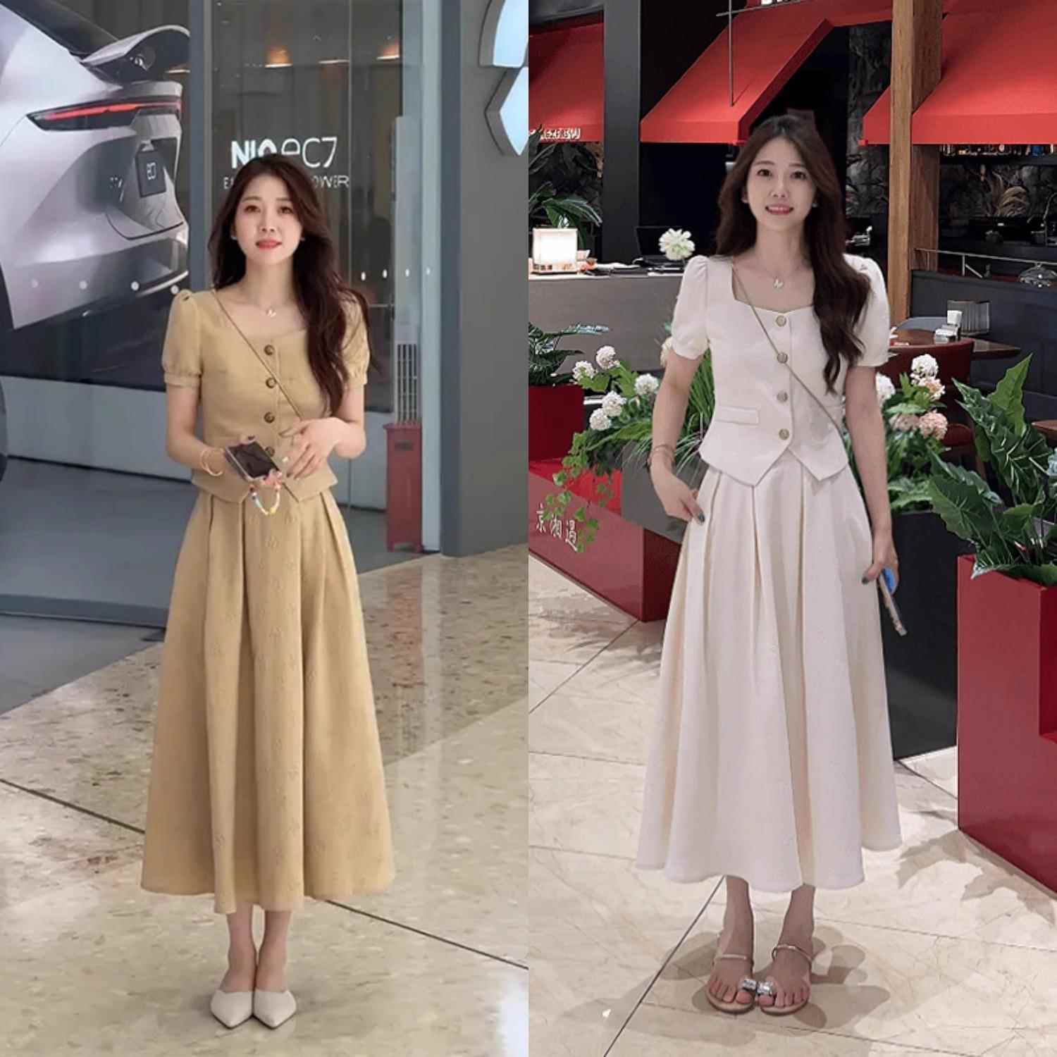 大尺码夏装搭配一整套女胖mm高端气质西装遮肚子显瘦半身裙两件式