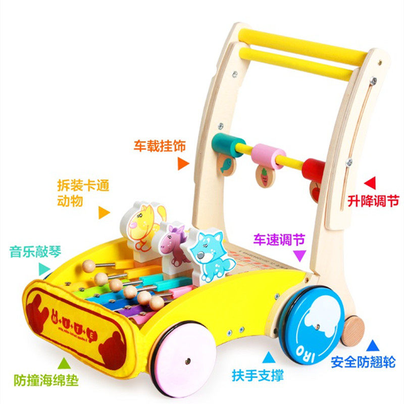 婴儿幼儿童木制手推车学步车玩具6-18个月宝宝学走路防侧翻助步车