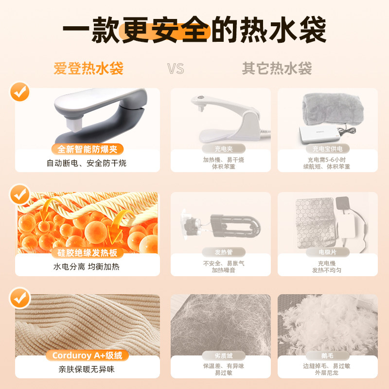 edon爱登热水袋充电暖手宝新款暖宝宝暖水袋敷肚子电热宝防爆正品