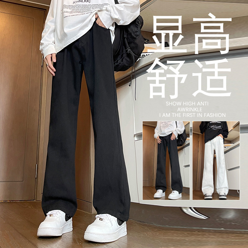 CetKy弯刀牛仔裤男款夏季美式hiphop裤子高街微喇直筒裤水洗泥色