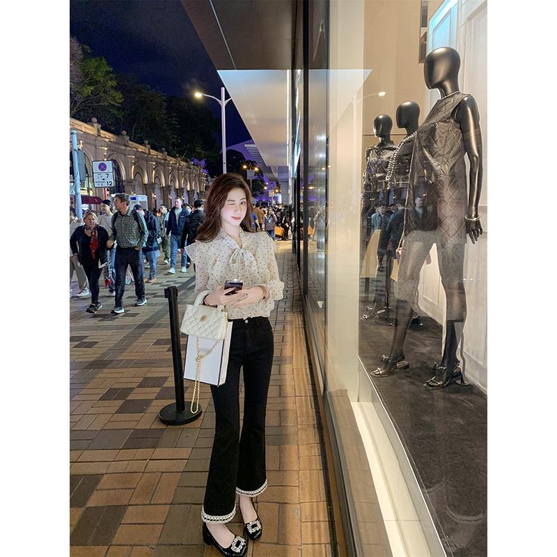 鱼兔子的兔子荷叶边系带雪纺长袖衬衫女2025春季新款高级法式上衣