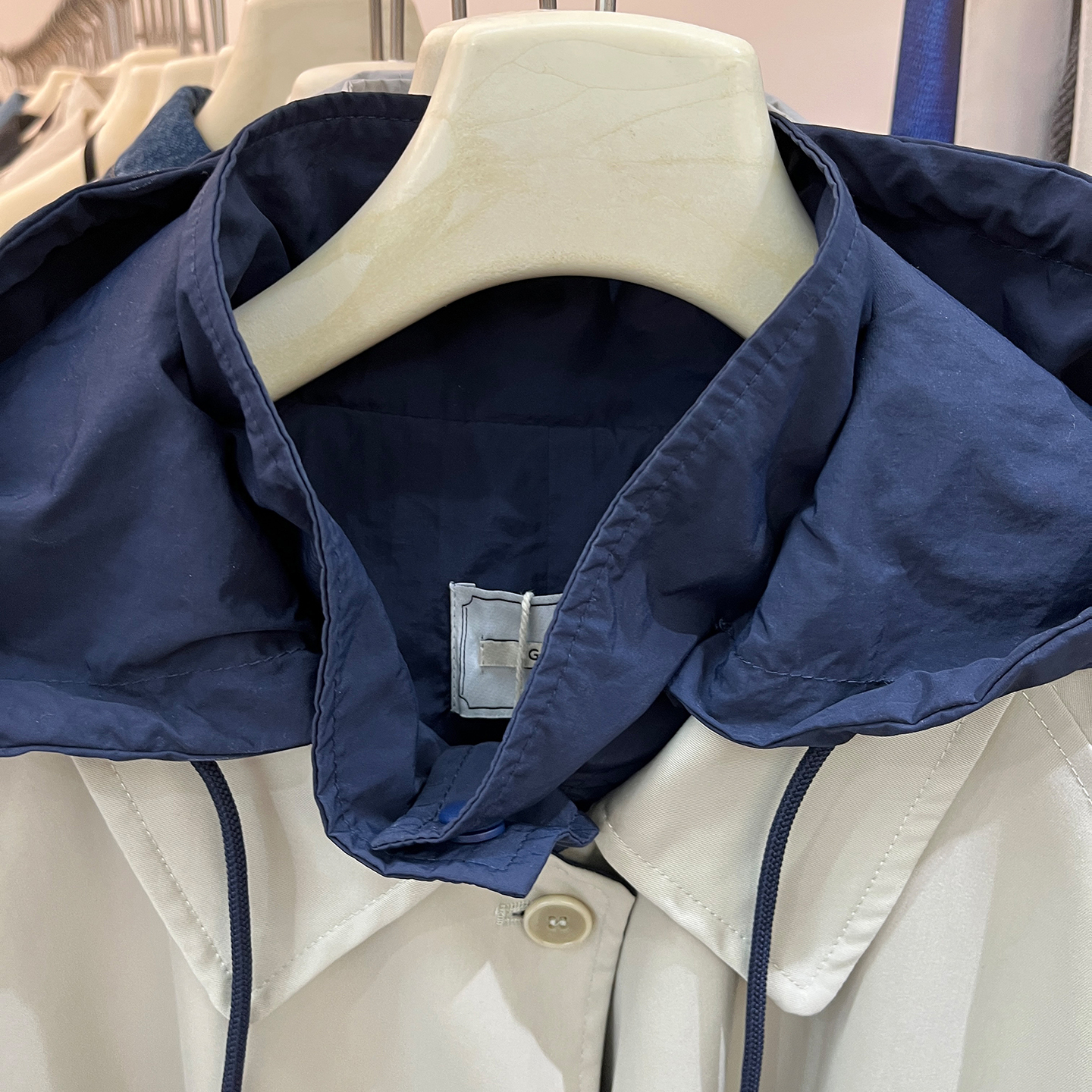 GRH十三行女装新款韩系秋季流行风格宽松长款撞色连帽风衣外套女