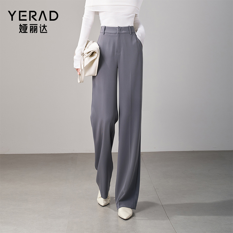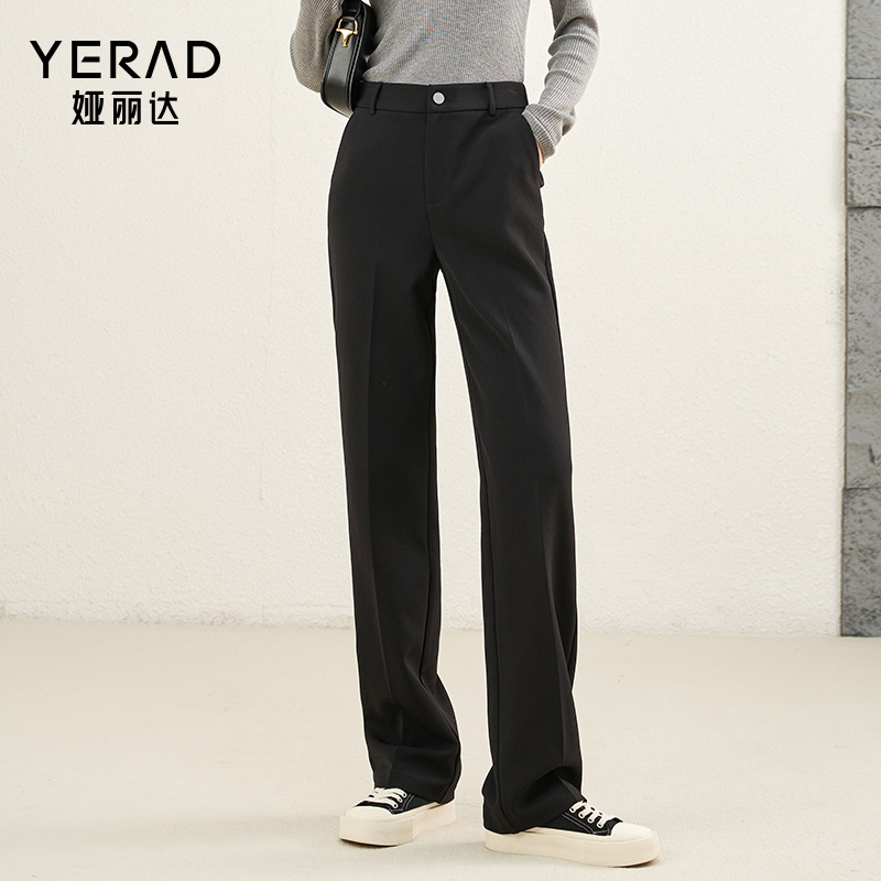 娅丽达新款黑色直筒裤女春冬西裤小个子女裤休闲裤子阔腿裤西装裤