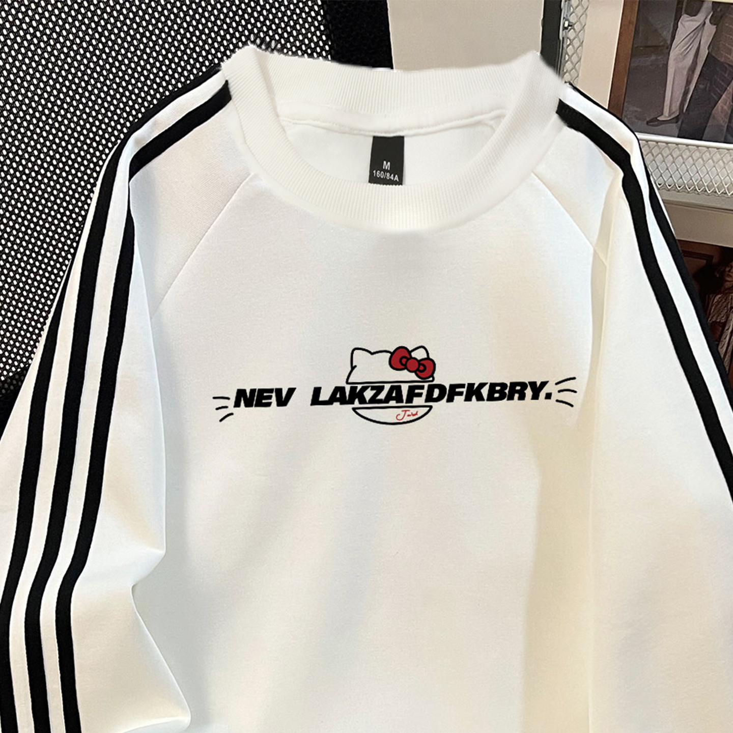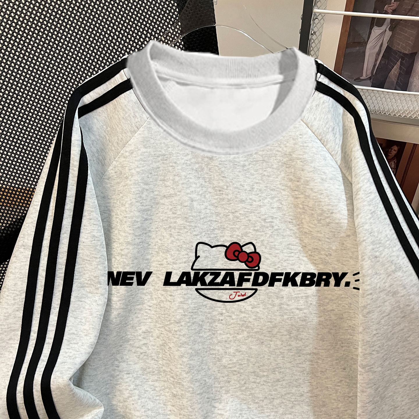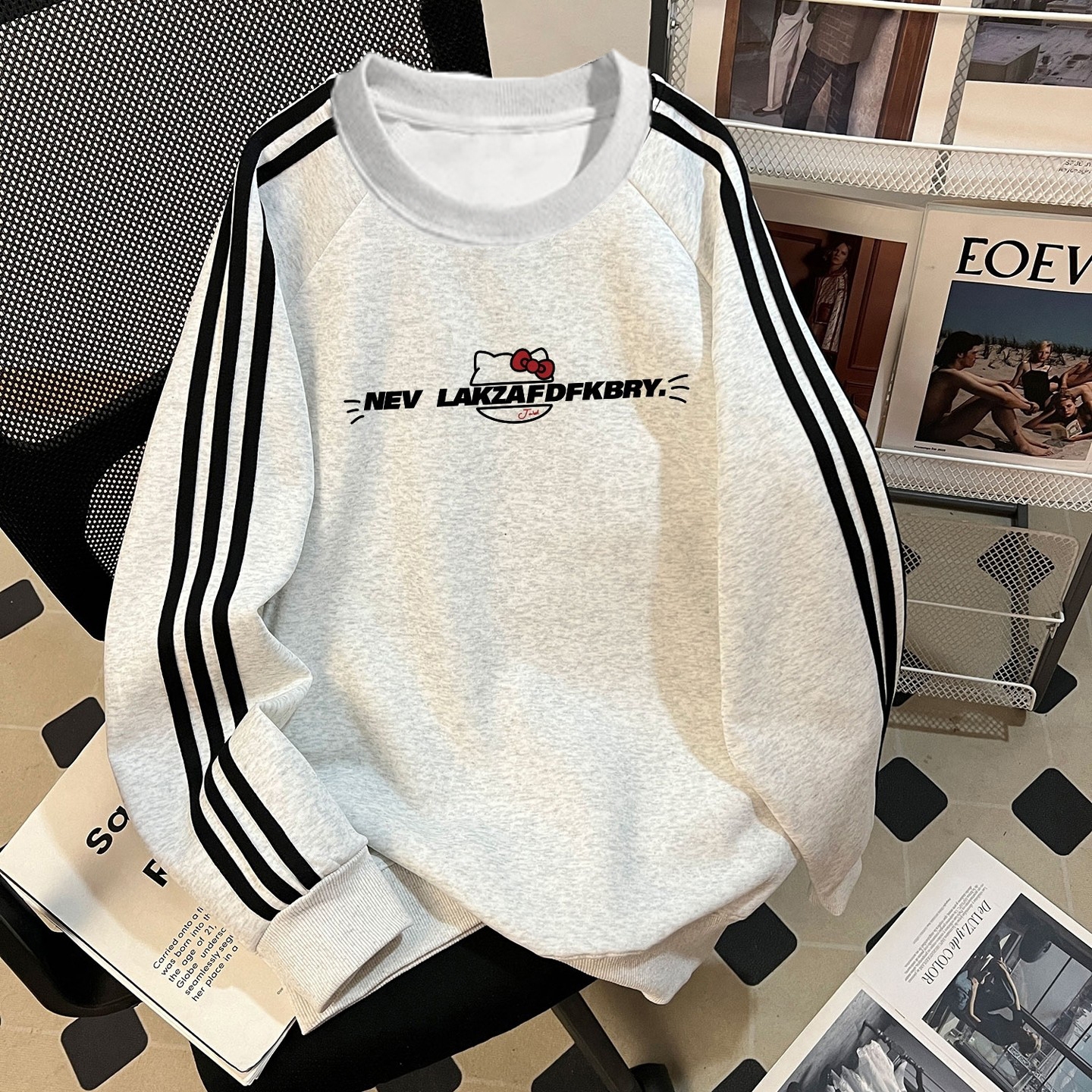 女童卡通凯蒂猫三条杠圆领加绒卫衣秋冬季中大童加厚保暖纯棉上衣
