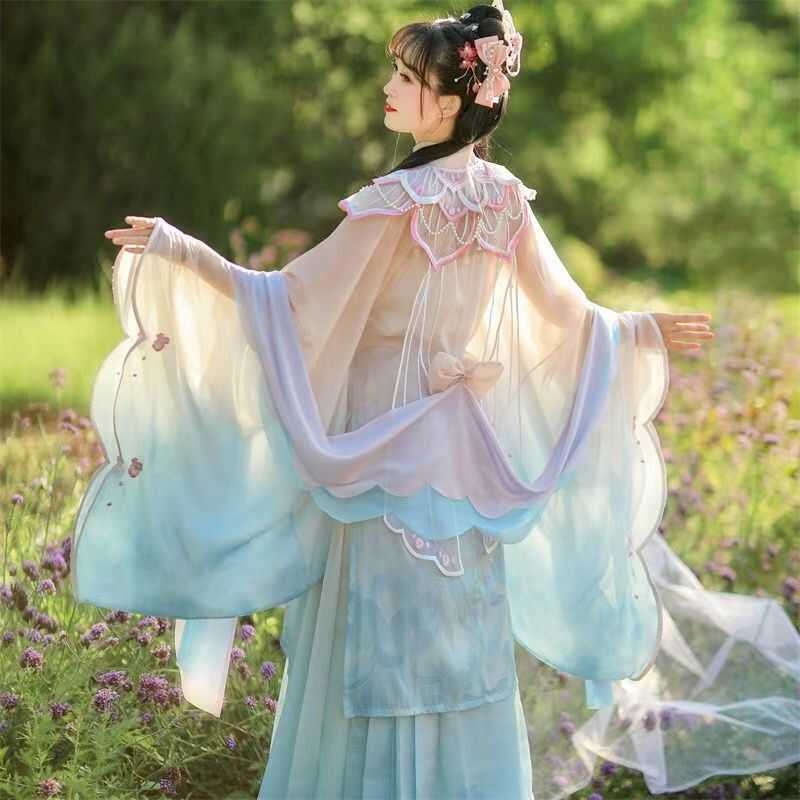 原创汉服女秋季明制仙气飘逸唐制古风新款套装长衫步步生莲马面裙