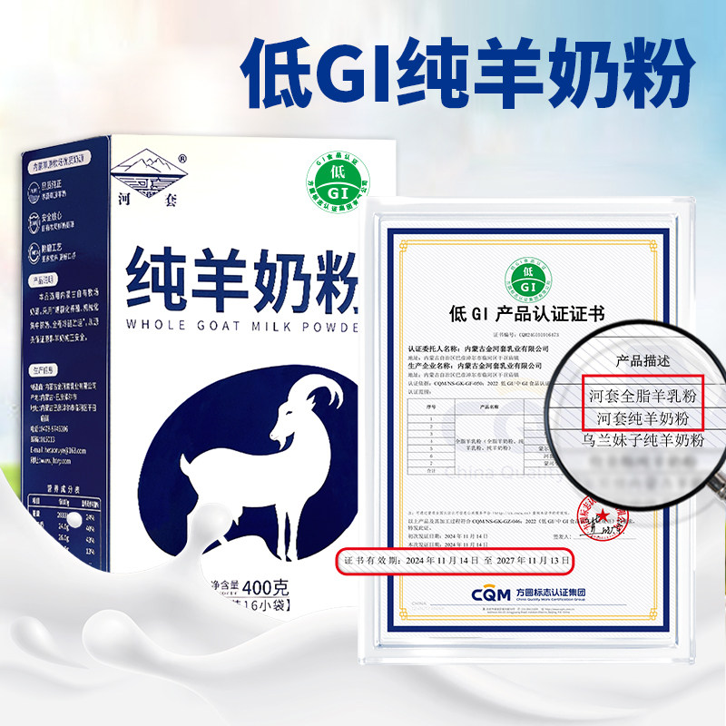 河套纯羊奶粉全脂中老年成人无蔗糖儿童高钙生羊乳女士400g内蒙古