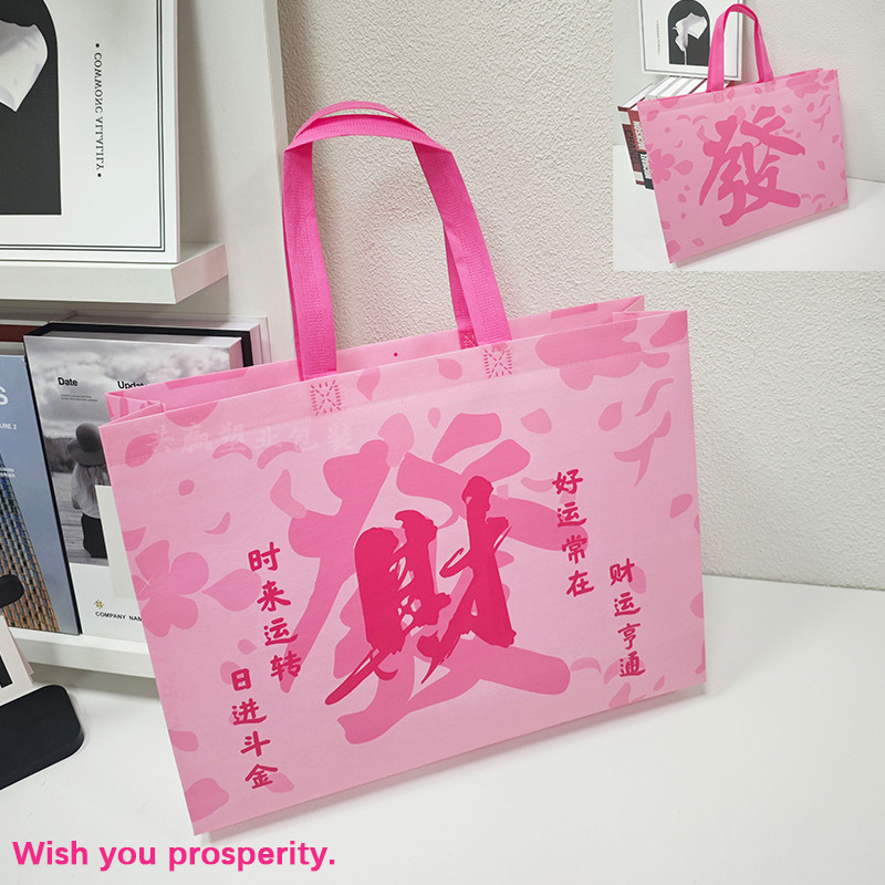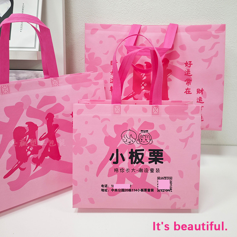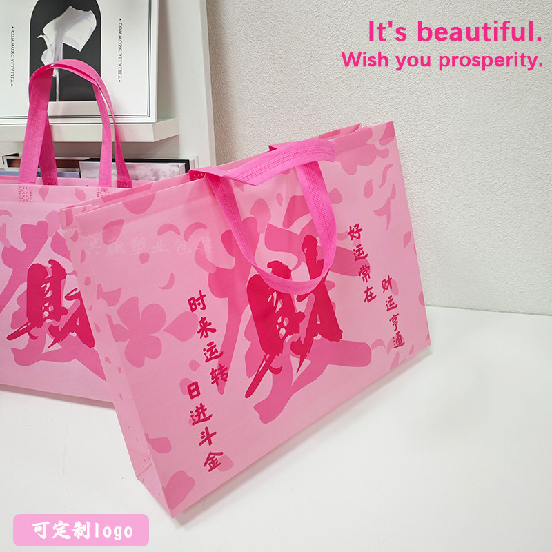 高档发财覆膜无纺布袋子服装店礼品袋衣服打包袋手提袋定制印LOGO