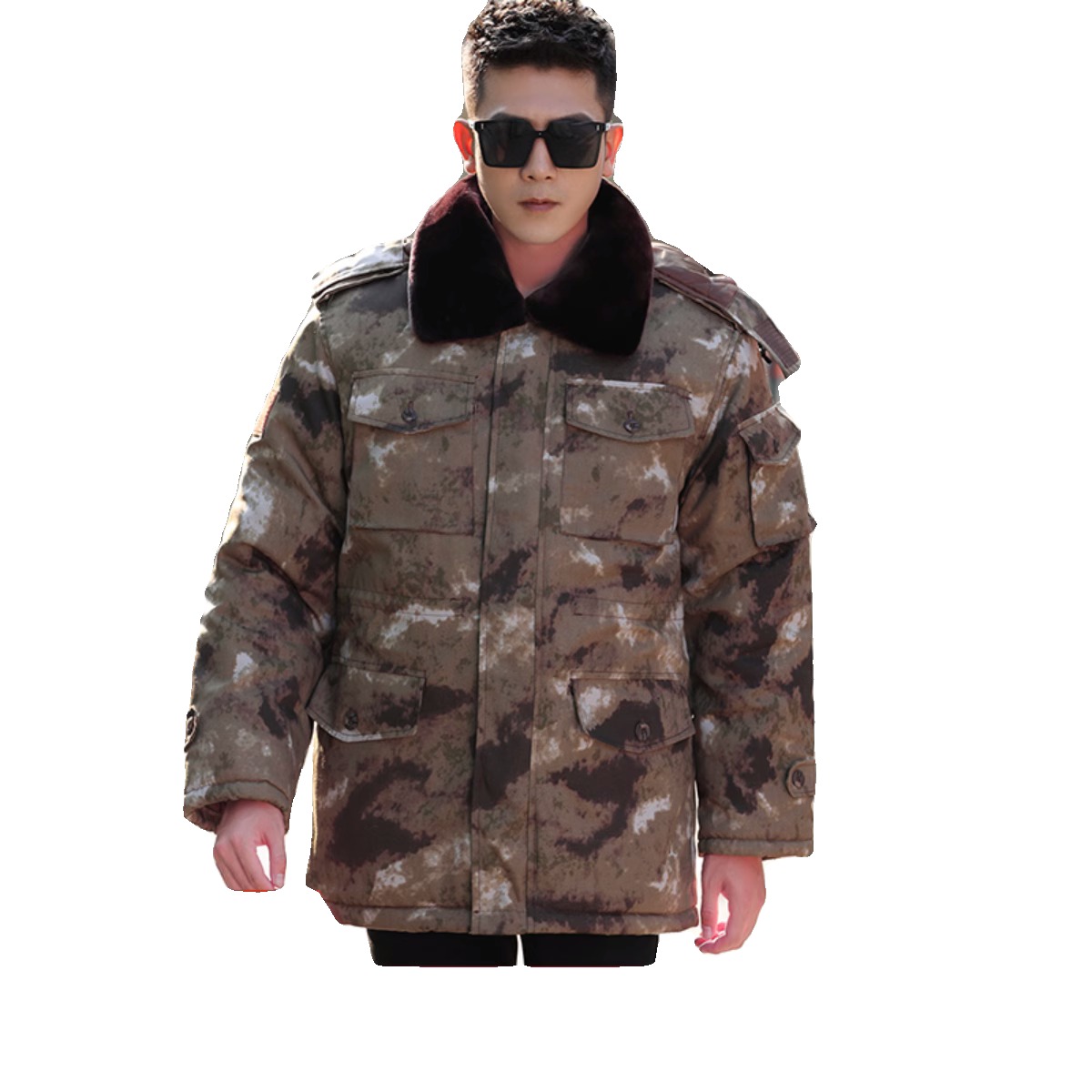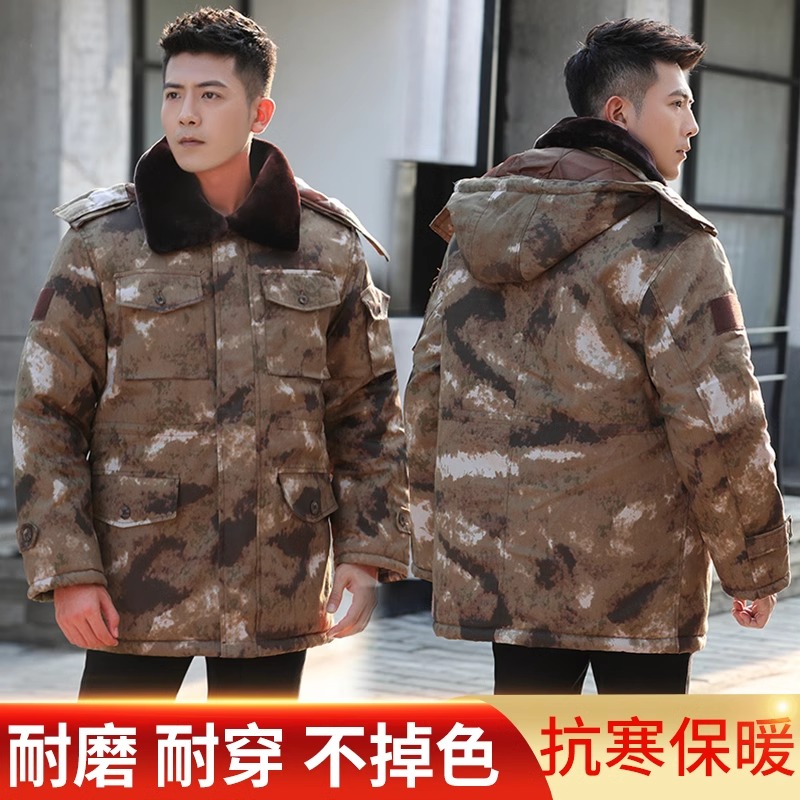 正版黄色迷彩军大衣冬季保暖防水中长款东北棉衣服男女沙漠A30-07