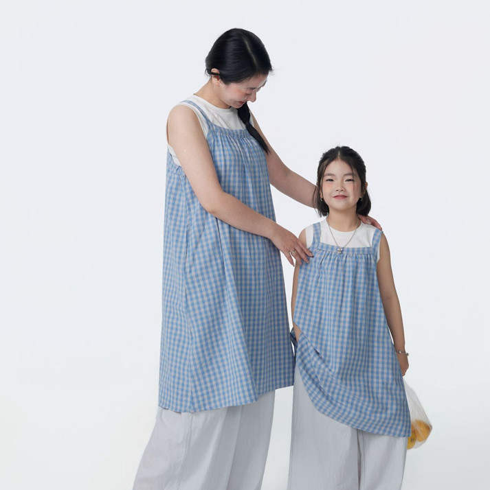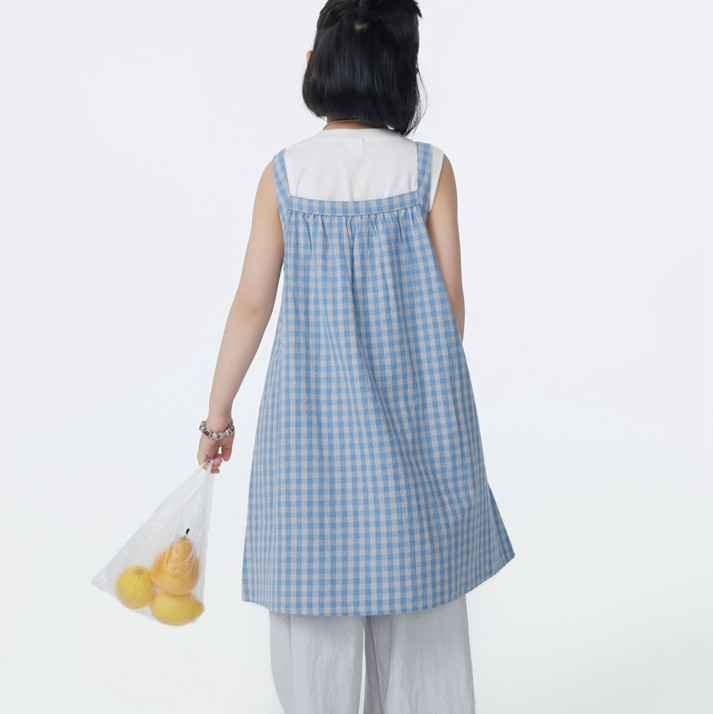 女童吊带格子连衣裙2026夏季无袖中长款裙子儿童亲子休闲背心裙