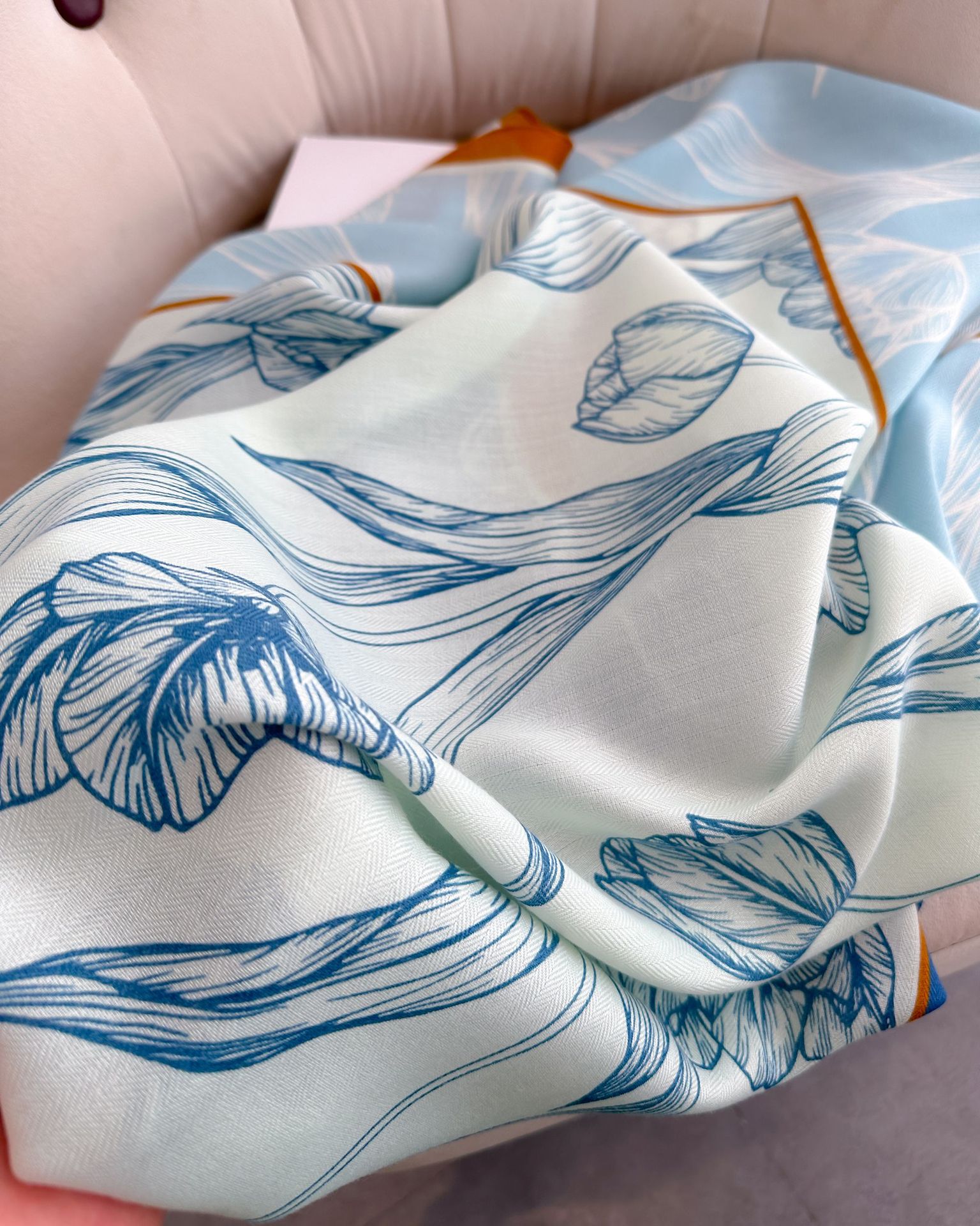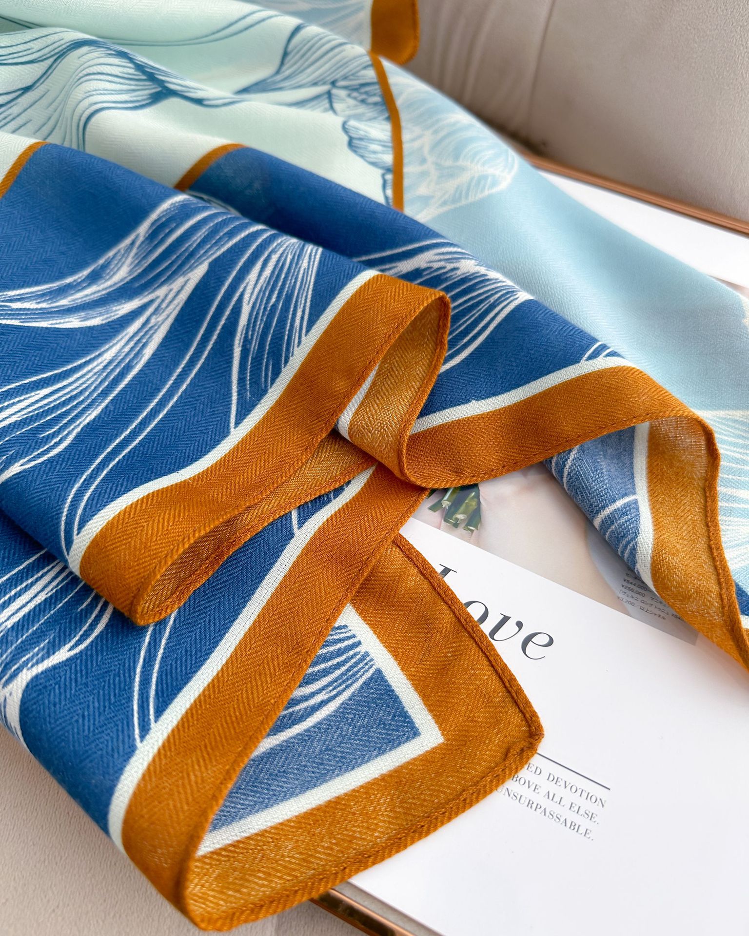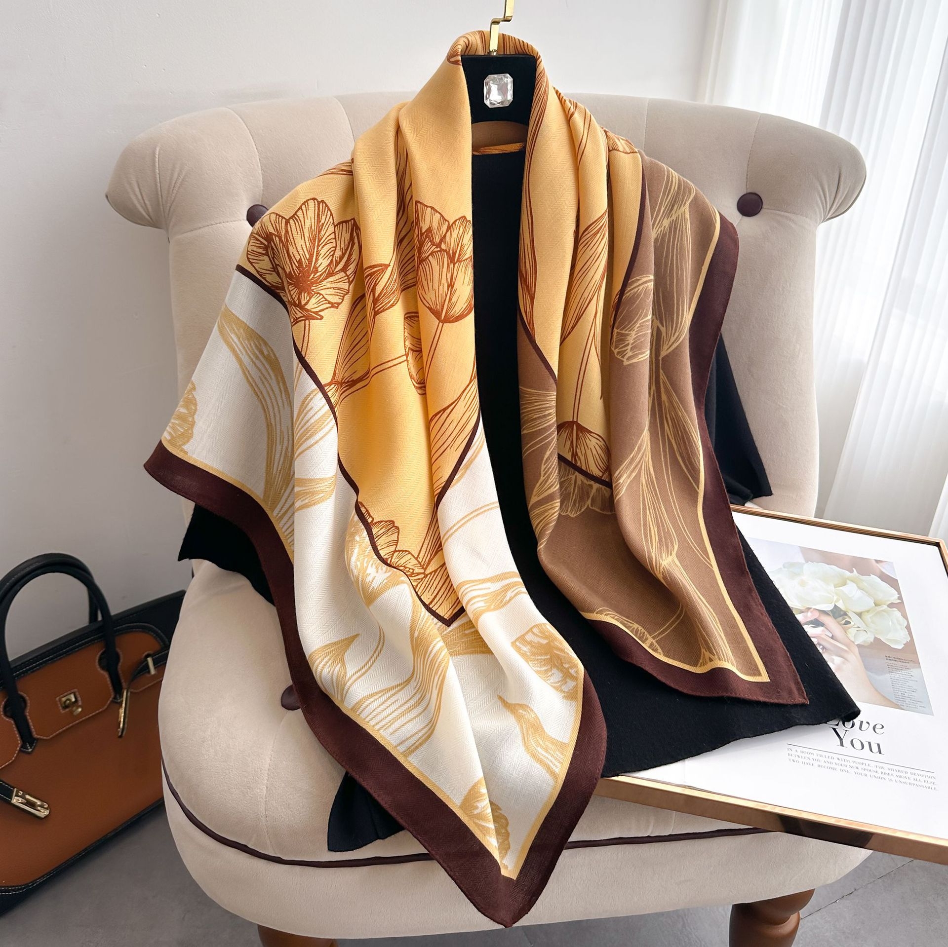 素描花卉仿羊绒围巾女90大方巾空调房披肩旅游护颈丝巾送妈妈礼物