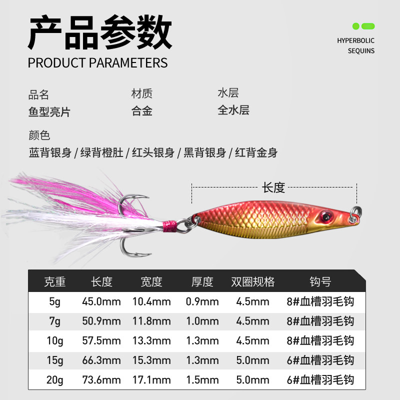 勺子水蛭亮片路亚饵套装鱼形铁板彩色铁板饵钓翘嘴假饵路亚装备