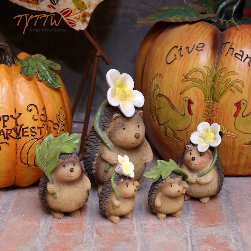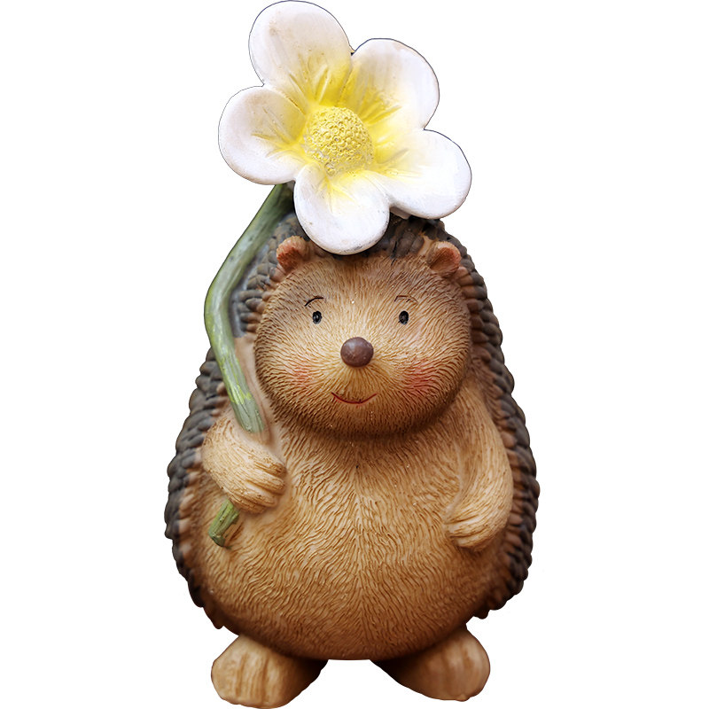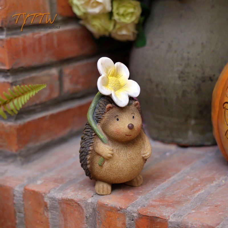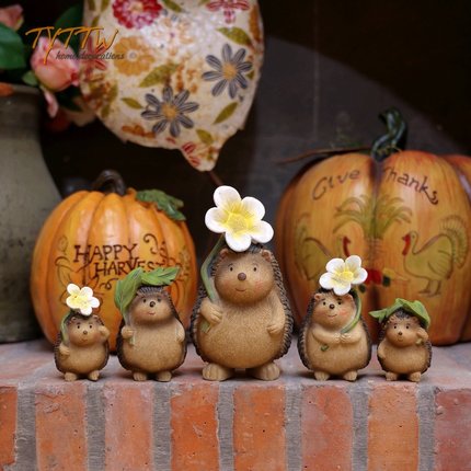 可爱绿叶小黄花小刺猬树脂萌物创意橱窗玄关餐厅摆件庭院花园装饰