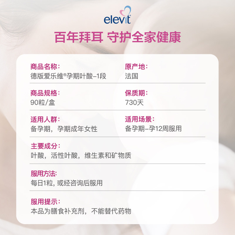 【自营】德版Elevit爱乐维1段活性叶酸孕妇孕前期复合维生素90粒