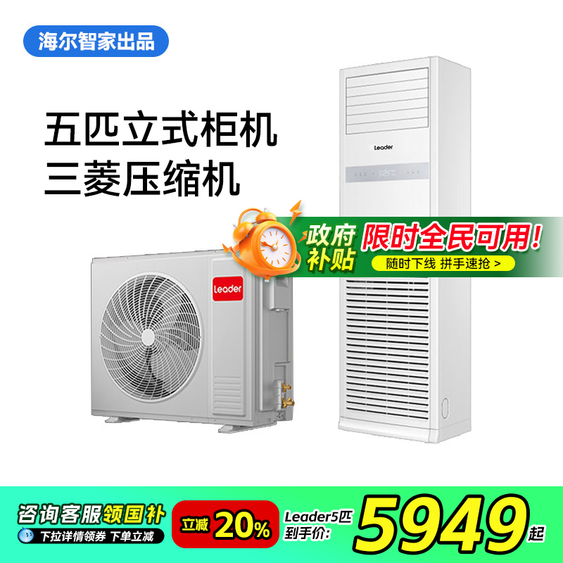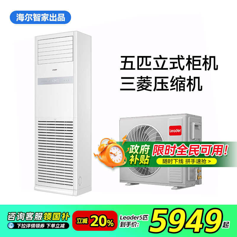 【政府补贴】海尔五匹立式柜机中央空调5p商用leader冷暖商铺旗舰