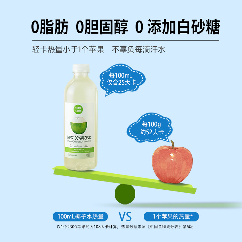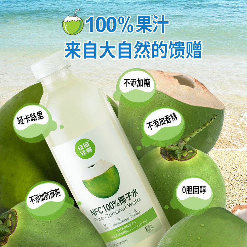 轻朗轻椰NFC100%椰子水1L*2大瓶分享装进口椰青孕妇可喝含电解质