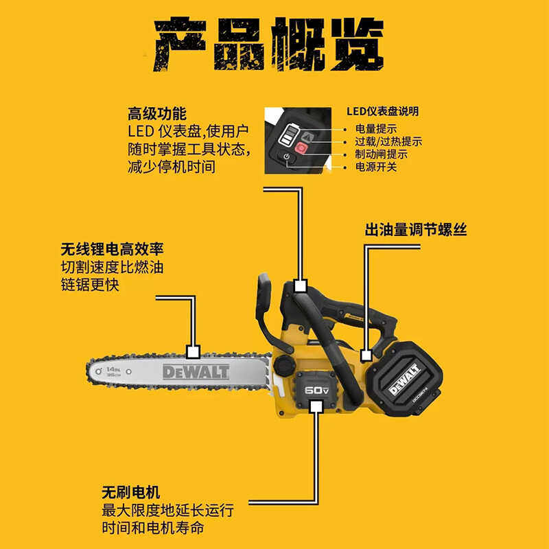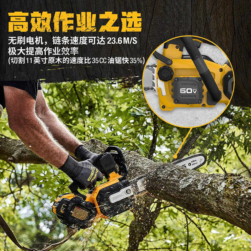得伟60V锂电无刷14"高速链锯DCMCST635手提链条锯伐木锯原装正品